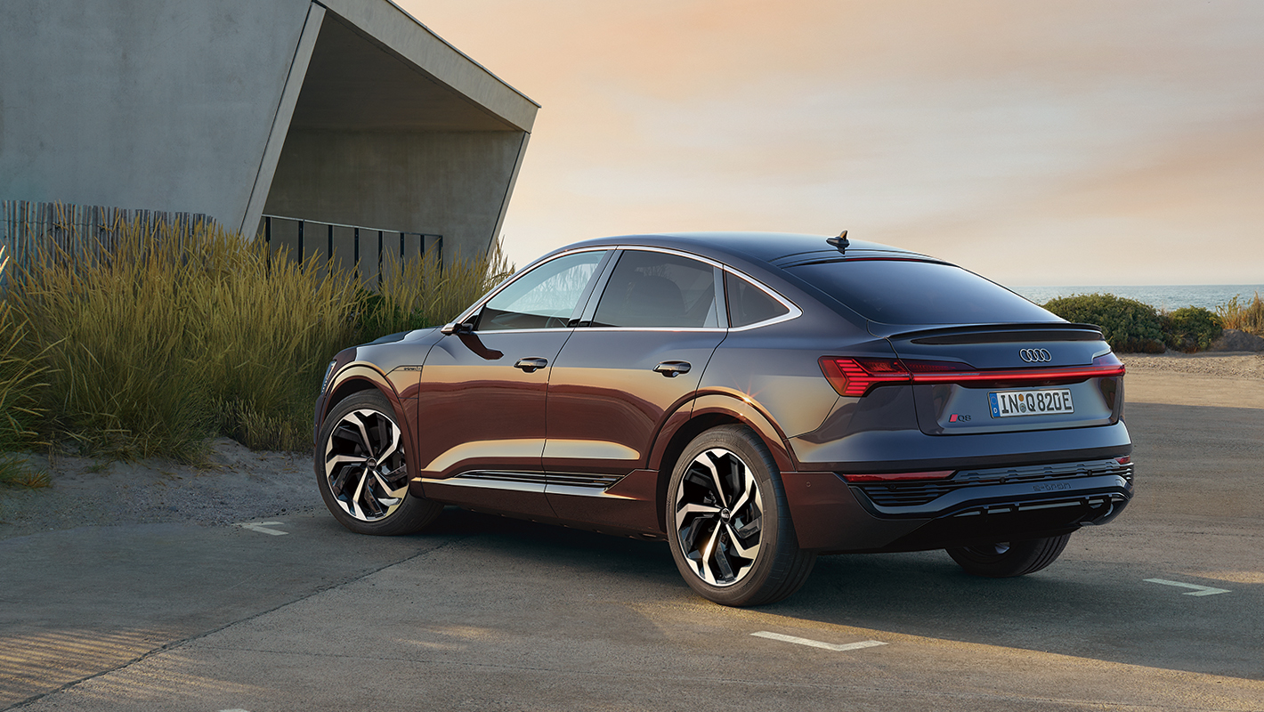 SUVの力強さとリヤに向かって美しく弧を描く流麗なシルエットを兼ね備えたAudi Q8 Sportback e-tronと、堂々たる重厚な印象のAudi Q8 e-tronをご用意。いずれも、ダイナミックなエクステリア、精緻にデザインされたインテリアを併せ持つS lineを設定しています。