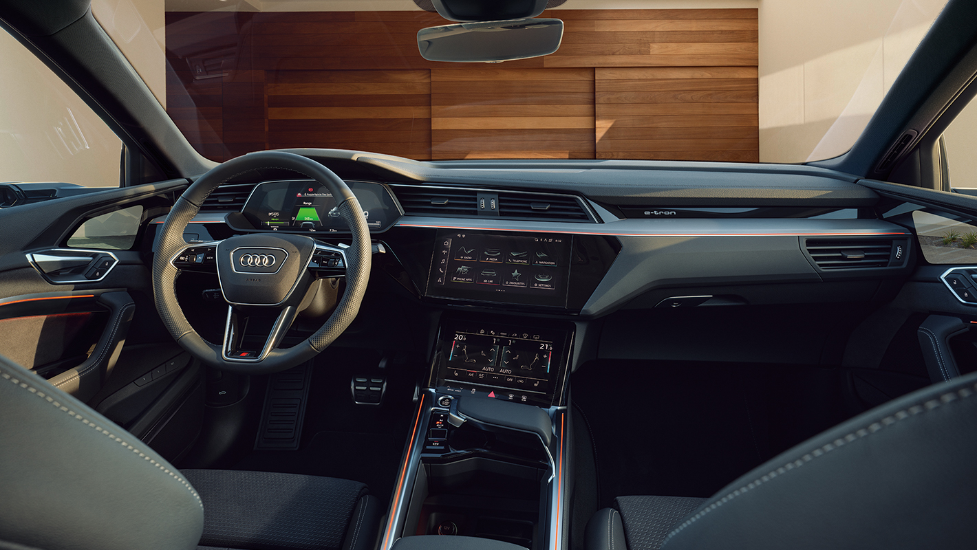 Audiの正統なSUVモデルのデザインDNAを受け継ぎながら、そこに先進的な電気自動車のエレメントを融合。逞しく均整の取れたプロポーションに加え、くっきりと際立つシャープなキャラクターライン、ダイナミックなボディパネルは彫刻のようなコントラストを生み出します。エクステリアは各部のディテールに至るまで形状を研ぎ澄まし、エアフローを徹底的に最適化。目に見える美しさのみならず、空気抵抗による損失を防ぎ、一充電走行距離の向上を両立しています。