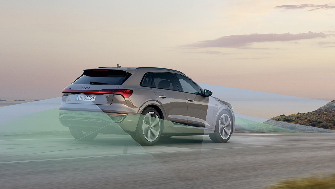 Audi Q8 e-tronは、ドライバーとパッセンジャーにさらなる安心をもたらすために、高精度なレーダーやカメラ、各種センサーを搭載し、それに基づく統合的な制御を実現します。衝突の回避支援、被害軽減を図るアウディプレセンスフロント/プレセンスリヤなどが、安全なドライブに貢献。さらに、アダプティブクルーズアシストやカーブストーンアシストなど、多彩なドライバーアシスタンスシステムを採用し快適なドライブをサポートしています。