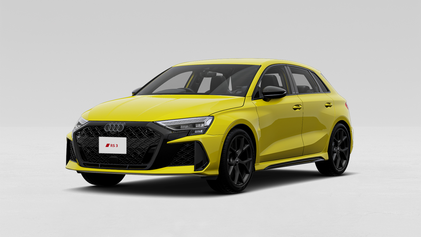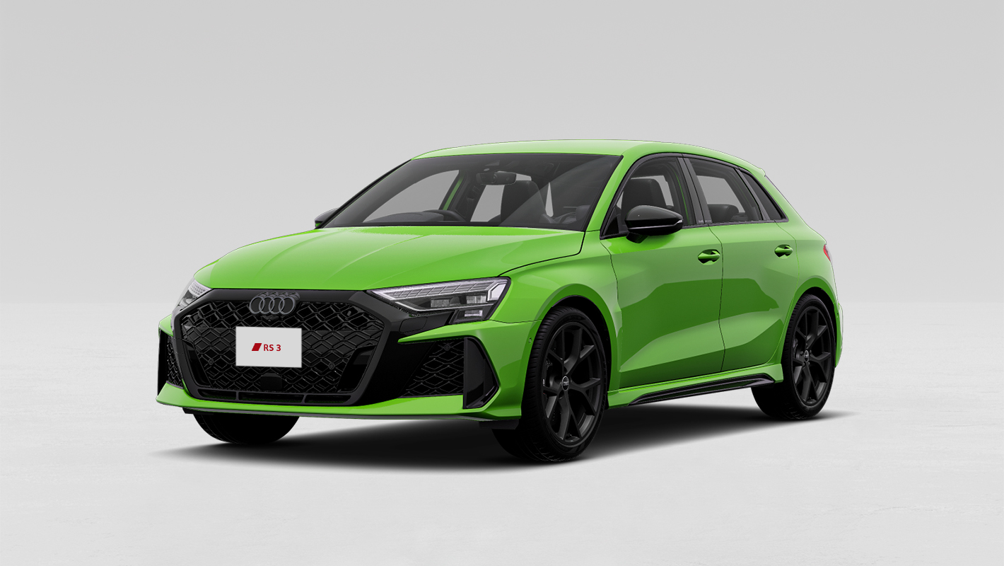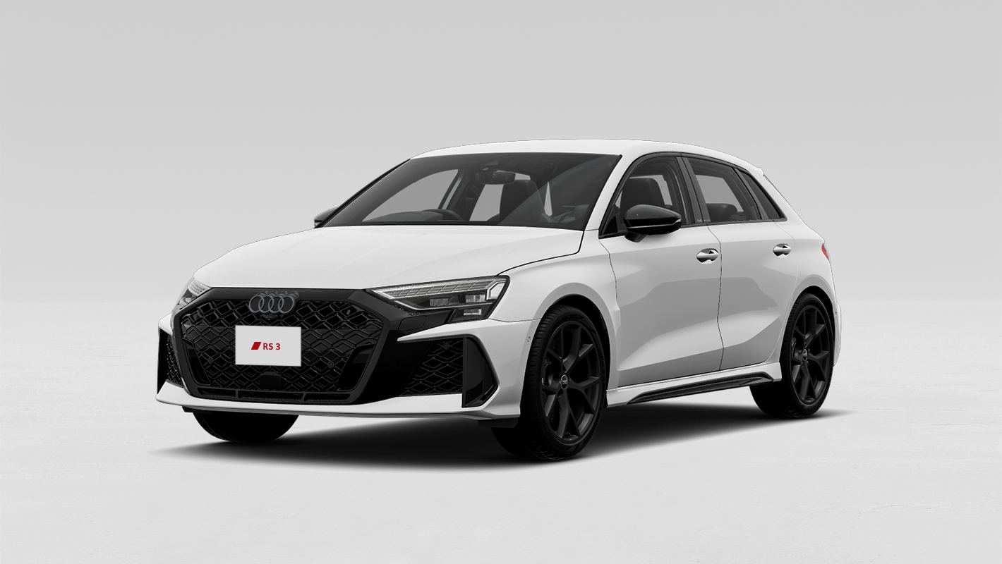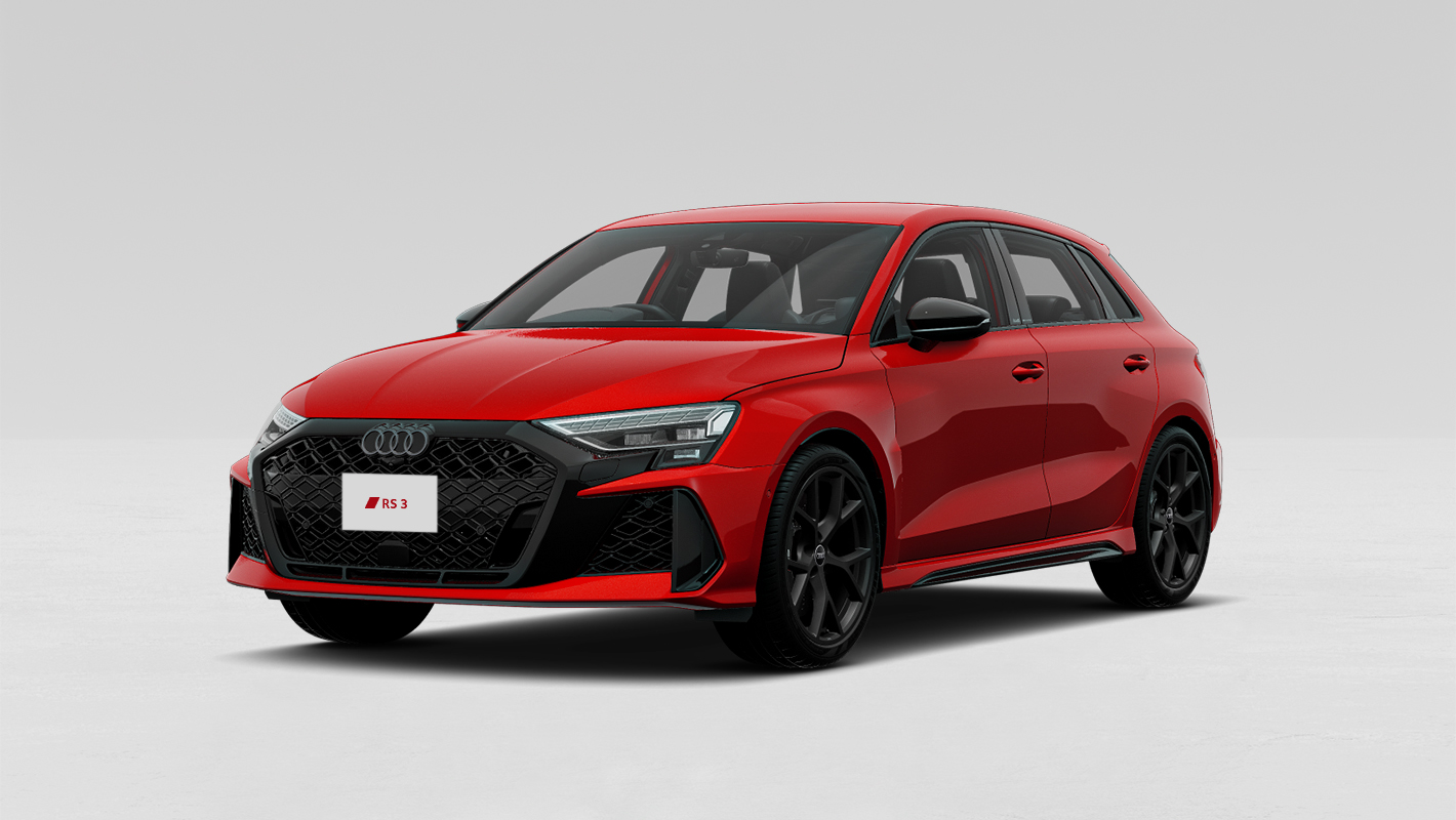 ダイヤモンドパターンのグリルとハイグロスブラック仕上げのシングルフレームグリル、大型のエアインテークを備えたRSバンパーが、Audi RS 3の躍動感を強調。モータースポーツから着想を得たリヤデザインは、RS専用大型リヤディフューザーやオーバル形状のテールパイプが独特の存在感を醸し出します。革新的なマトリクスLEDヘッドライトには、チェッカーフラッグデザインのデジタルデイタイムランニングライトも備え、視覚的にそのパフォーマンスを表現しています。
