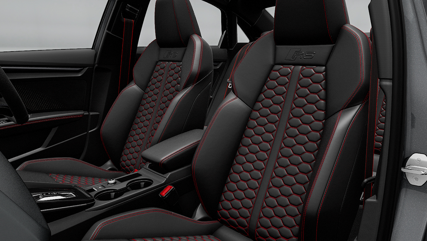 フロント、リヤにレッドステッチ入りのフロアマットが装備されます。RSロゴ付き。