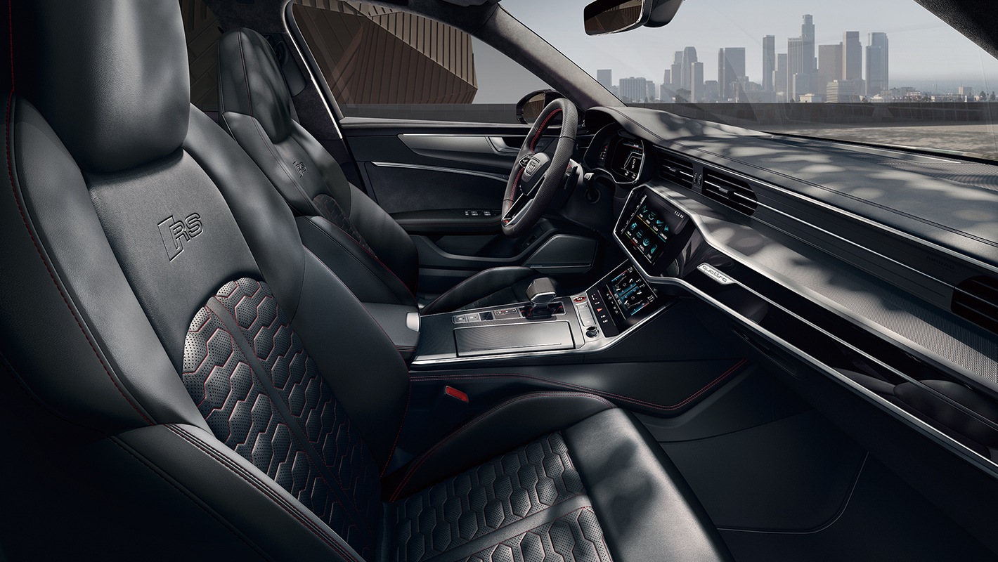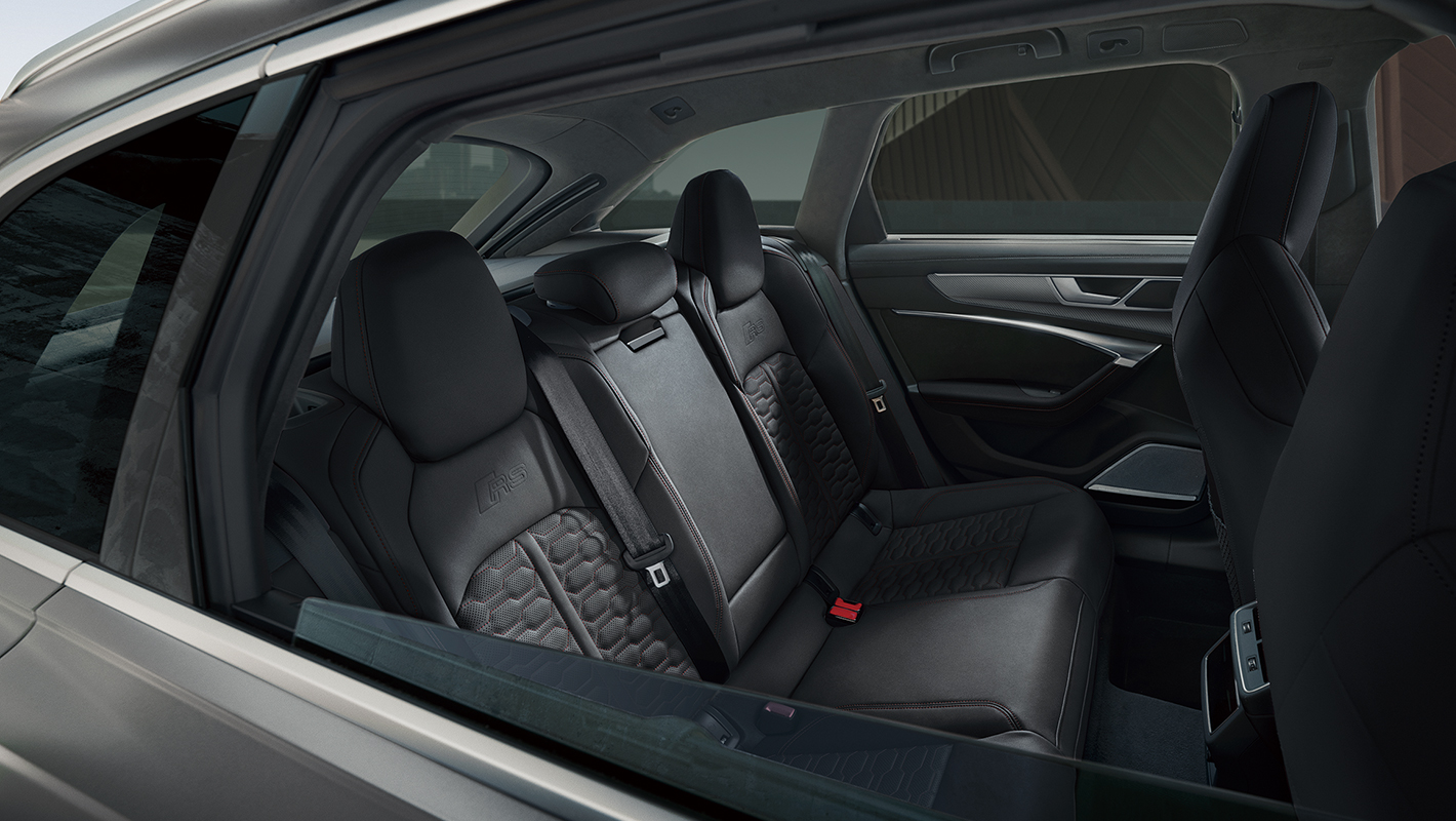 Audi RS 6 Avant performanceのアスレチックなキャラクターは、その高品質なインテリアからも感じられます。バルコナレザー仕立てのSスポーツシートはコーナリング時も身体をしっかりとホールドし安定感を提供。アルミ製大型パドルシフト付きステアリングホイールやアルミニウムレースのデコラティブパネルなど細部にまでスポーティネスを宿らせます。インストルメントパネルには直感的な操作を可能にするMMIタッチレスポンスと瞬時に情報を確認できるバーチャルコックピットを備え、ドライバーオリエンテッドな操作環境を実現。また、余裕のあるリヤシートと実用的な収納スペースを確保。どんな目的でも必要なものをすべて収納できる十分なスペースを備えています。