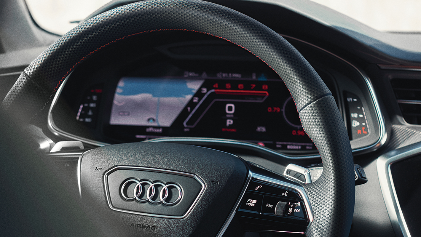 いかなる時もドライビングへの集中力を絶やすことのないデジタル化されたコックピット。最小限の視線移動で瞬時に情報を確認できるバーチャルコックピットはRSモデル専用の表示メニューを選択可能。さらに車速やナビゲーションなどの情報をフロントウィンドウ上に投影するヘッドアップディスプレイも標準装備しています。必要な情報があるべき場所にレイアウトされたドライバーオリエンテッドな空間で、Audi RS 6 Avant performanceのポテンシャルを余すところなく堪能できます。