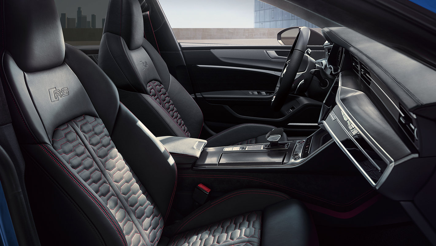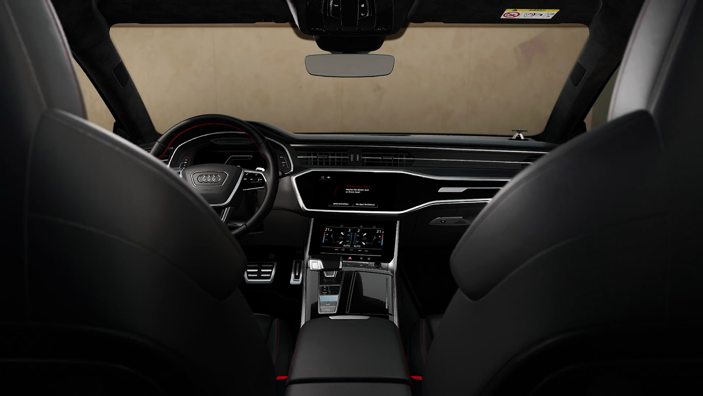 スポーツマインドに満ちたゆとりの空間に、インテリジェントな先進のデジタルテクノロジーを惜しげもなく投入。コーナリング時も身体をしっかりとホールドするSスポーツシートはバルコナレザーで、インテリア各部はファインナッパレザーで仕立てられています。RSロゴが刻まれたリヤシートにはゆったりと心を静められる余裕を確保。また、高解像度モニターに触れるだけで操作可能なMMIタッチレスポンスを採用し、ユーザビリティまで考え尽くされたラウンジのような心地よさを実現しました。