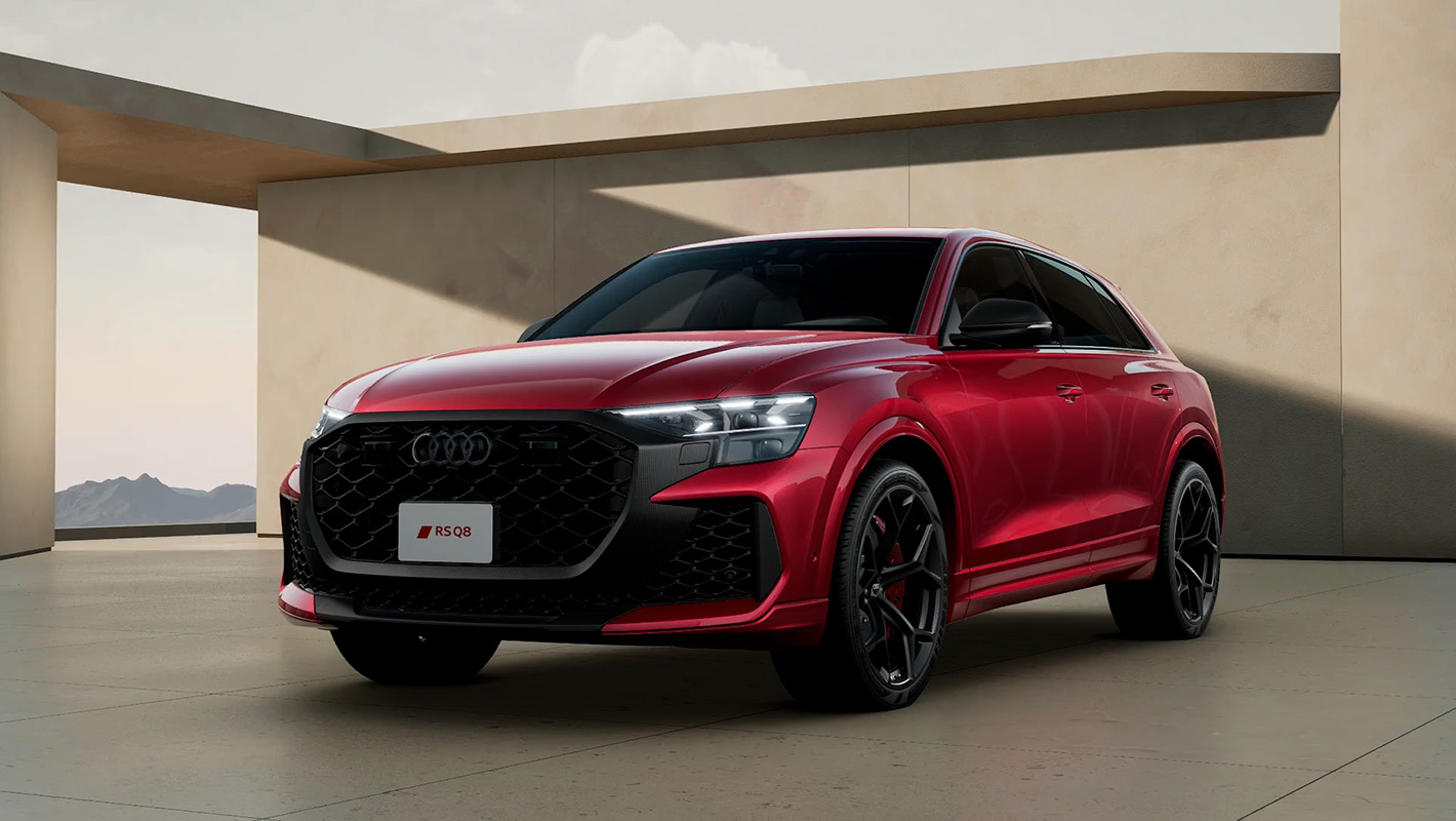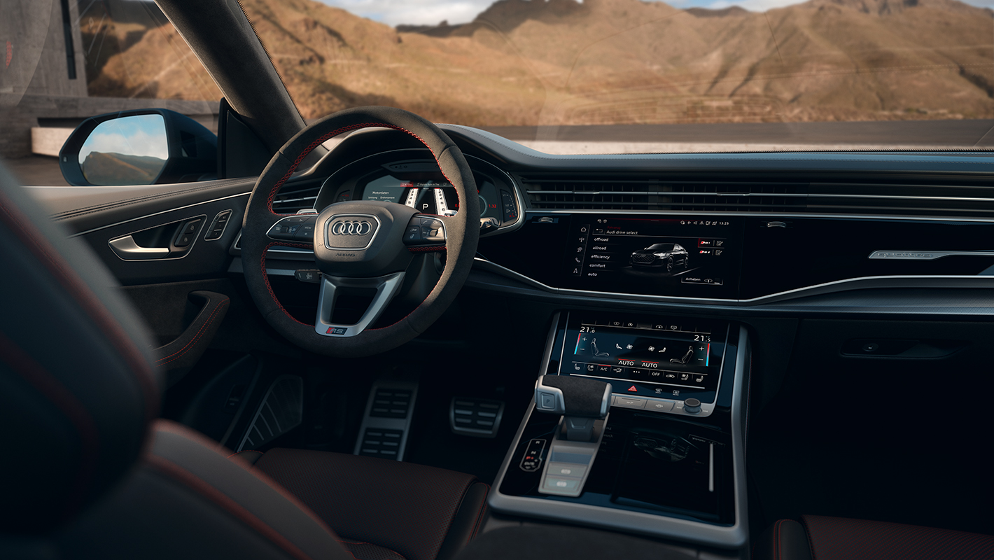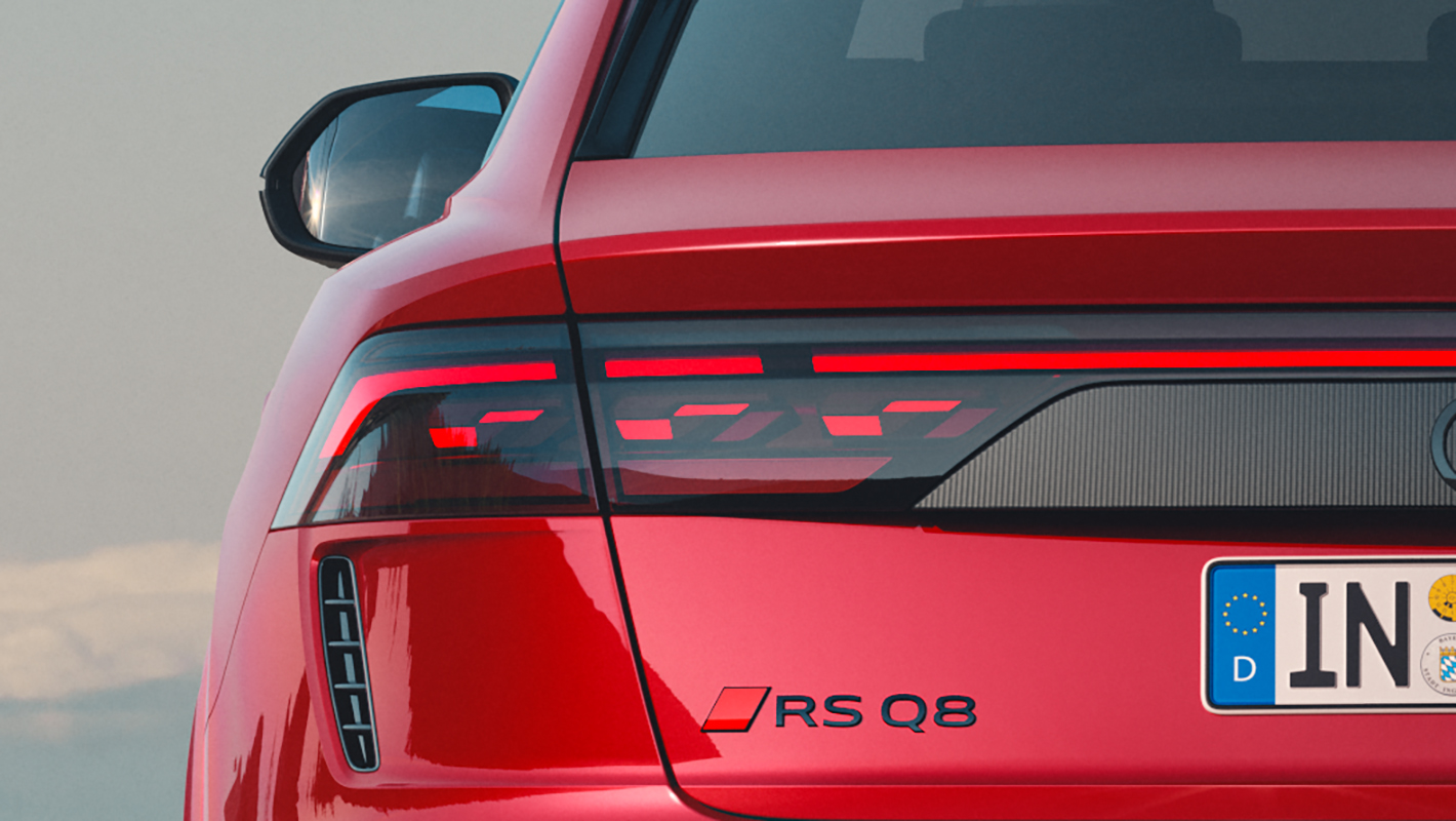 performanceモデルとして磨き上げたパワフルで表情豊かなRS専用エクステリアと、Audi Q8の頂点にふさわしい細部までエレガンスとスポーティネスを貫いたインテリア。印象的な表情を演出するライティングテクノロジー。Audi Sport史上最も強力なエンジンが生み出す比類なきドライビングダイナミクスを、個性際立つスタイリングに体現しています。