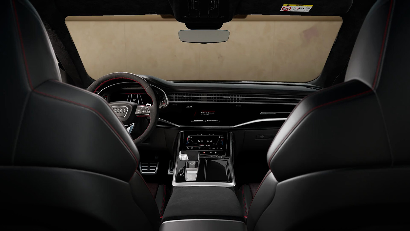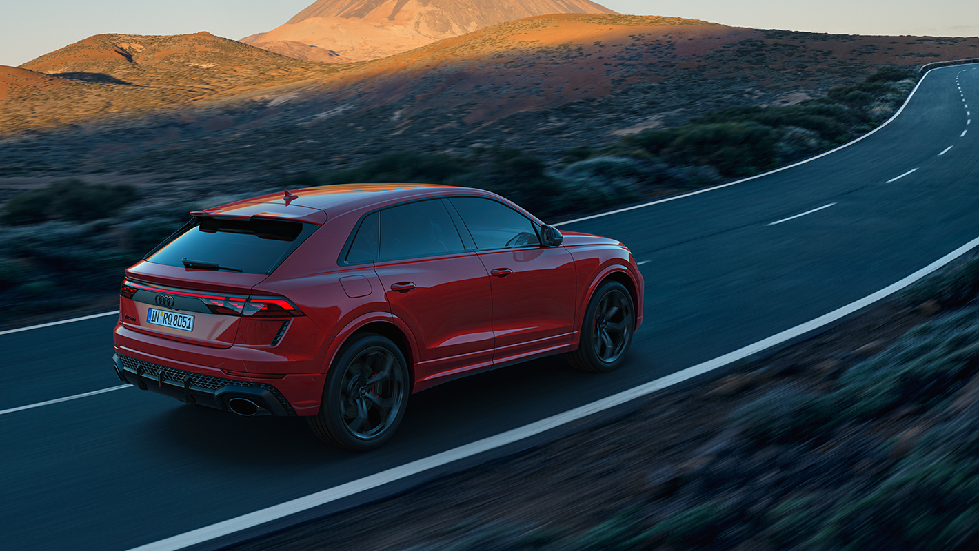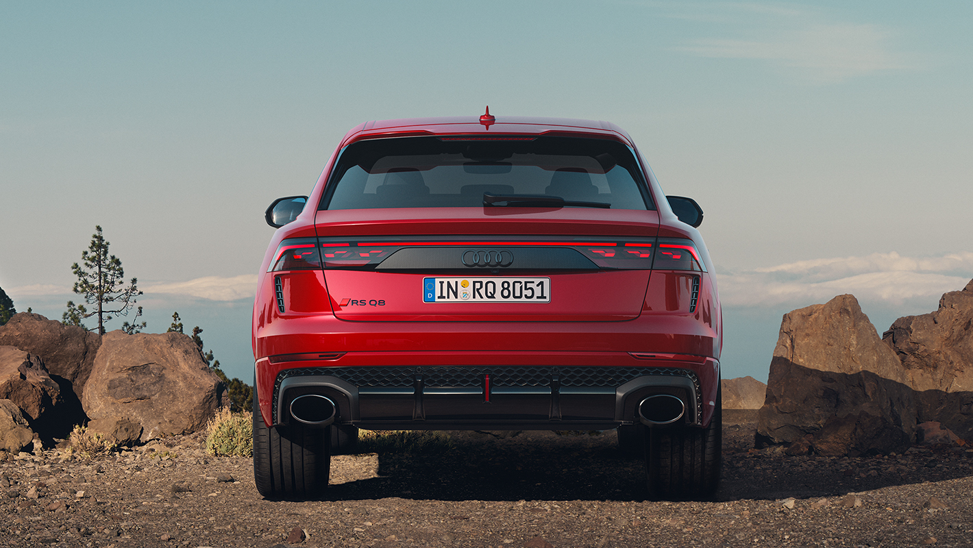 performanceモデルとして磨き上げたパワフルで表情豊かなRS専用エクステリアと、Audi Q8の頂点にふさわしい細部までエレガンスとスポーティネスを貫いたインテリア。印象的な表情を演出するライティングテクノロジー。Audi Sport史上最も強力なエンジンが生み出す比類なきドライビングダイナミクスを、個性際立つスタイリングに体現しています。