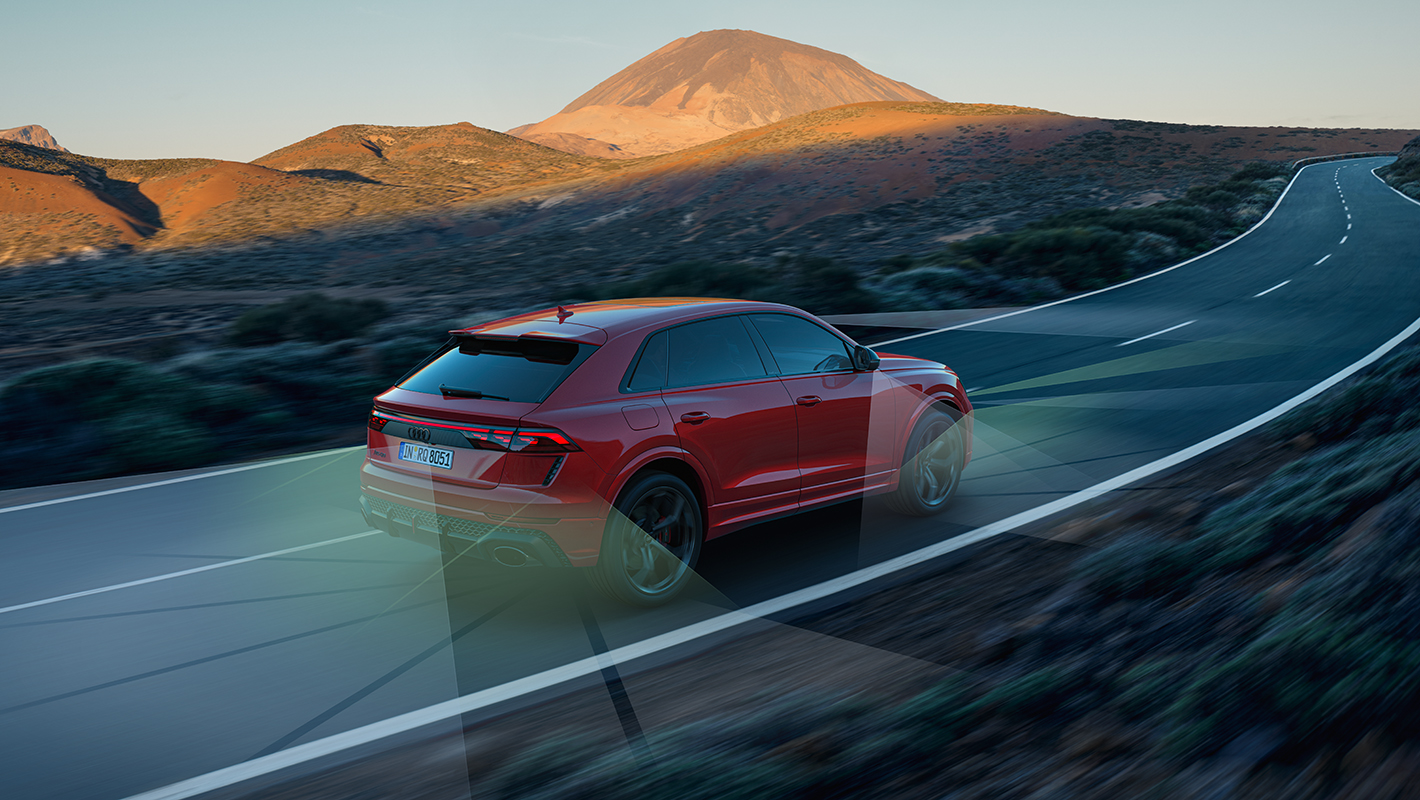 Audi RS Q8 performanceには先進のドライバーアシスタンス&セーフティテクノロジーを惜しみなく投入しています。複数のレーダーやカメラにより周囲の状況を的確に捉えるとともに、従来、個々で作動していた一つひとつの機能を連携させることで、より高度で繊細な制御を可能に。快適性と安心感に包まれた、かつてない新しいドライビング体験をお届けします。