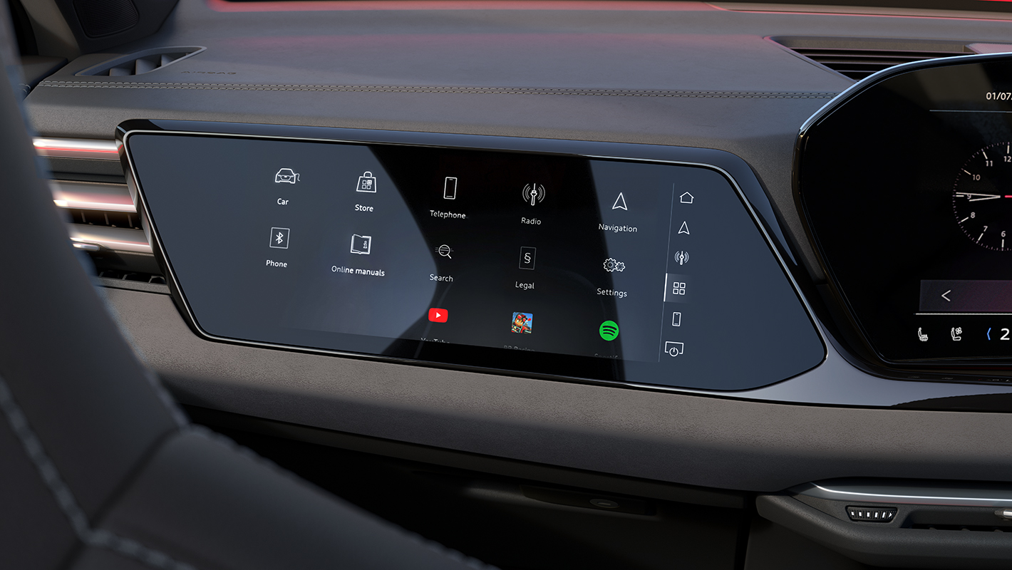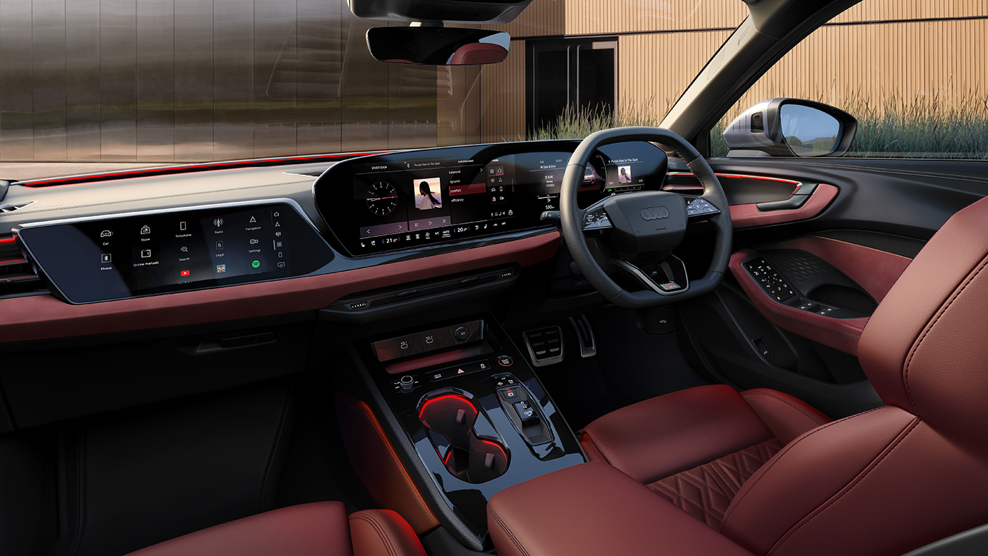 洗練されたデジタルインテリア体験をもたらすMMIパノラマディスプレイ。OLED技術を採用し、視認性に優れた曲面デザインで、11.9インチのバーチャルコックピットプラスと14.5インチのMMIタッチディスプレイがシームレスにつながります。MMIタッチディスプレイは、ナビゲーションマップや様々なインフォテインメント、車両のセッティングを直感的に操作することが可能。操作はタッチコントロールと音声によるアウディアシスタントに対応。アウディアシスタントは「Hey Audi」と発声するか、ステアリングのトークボタンから起動できます。AI音声アシスタントとして、車両機能の実行、目的地の検索、空調の調整などの制御機能を備えています。また、スマートフォンを介さずにAudi Application Storeから様々なサードパーティアプリを直接ダウンロードすることができます。