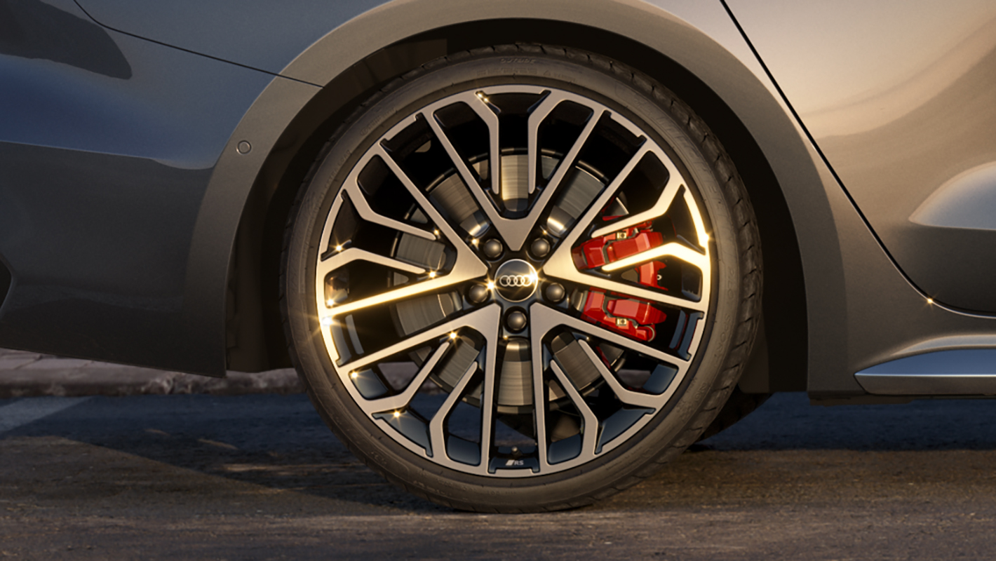 Audi S5の足元を彩るのは、20インチのマルチスポークSデザインホイール*。ブラックメタリックとポリッシュ仕上げが生み出す、スポーティネスと洗練を兼ね備えたデザインが、Audi S5の力強いサイドビューにさらなる躍動感を加えます。