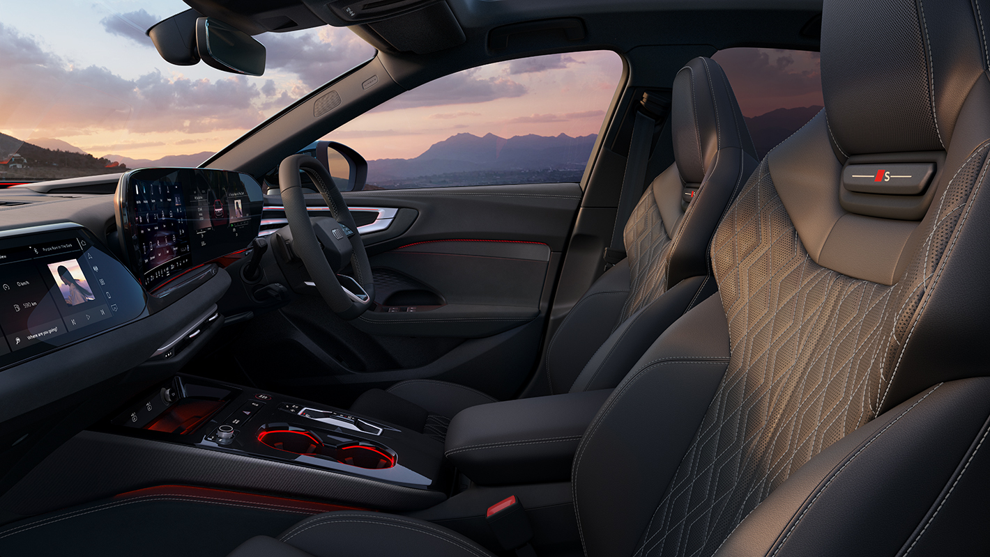 Audi S5は上質なレザーと耐久性に優れたアーティフィシャルレザーを組み合わせたスポーツシートを標準装備。さらにオプションには、温かみのあるファインナッパレザーのSスポーツシート*をご用意しました。背もたれには精緻なダイヤモンドステッチが施されるほか、シートベンチレーションやマッサージ機能も搭載し、快適な移動をサポート。ディテールの一つひとつに一切の妥協がない空間は、まさにスポーティネスとエレガンスを追求したクラフトマンシップの結晶です。