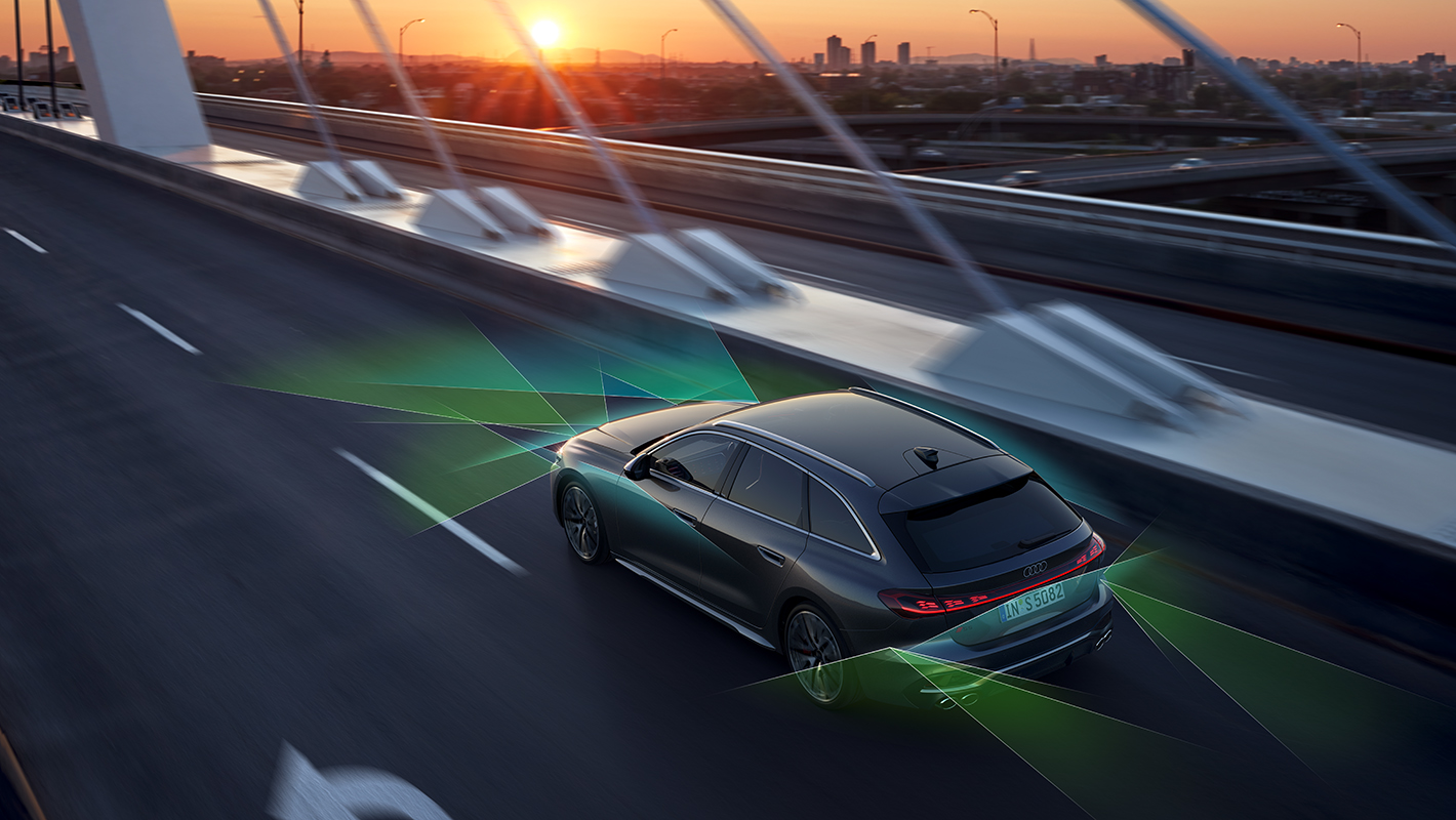 LED光源と精密な光学デバイスを組み合わせたカメラシステムによって、状況に合わせて配光を可変させ高度に制御。高速走行でハイビーム使用時にカメラが対向車や先行車を検知すると、そのエリアへのハイビームをオフにしつつ、それ以外の車間エリアや周辺は明るく照らし続けます。MMIタッチディスプレイで8つの点灯パターンを切り替えられるデジタルデイタイムランニングライトと、印象的な光の流れを生みだすダイナミックターンインディケーターも搭載しています。