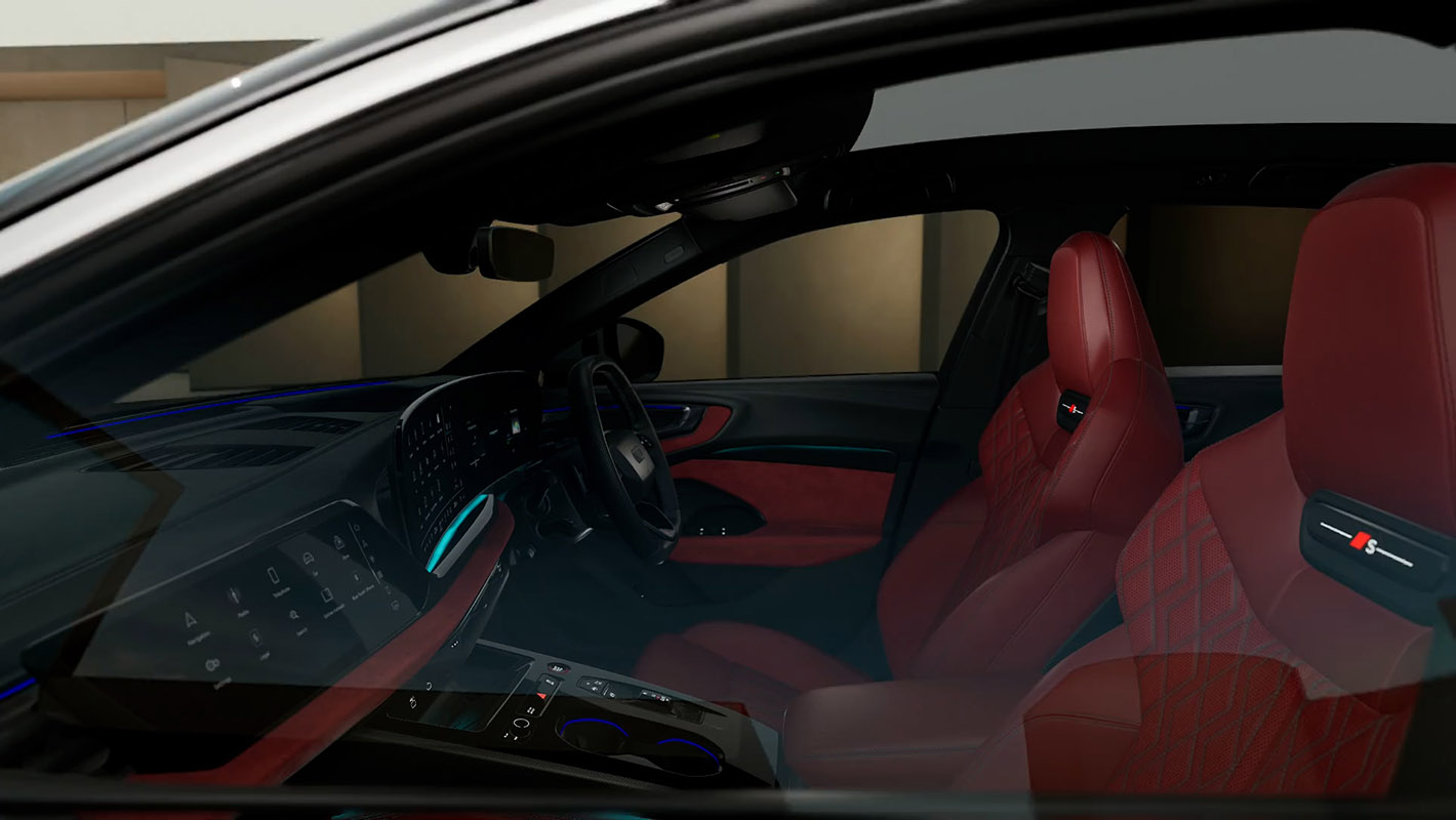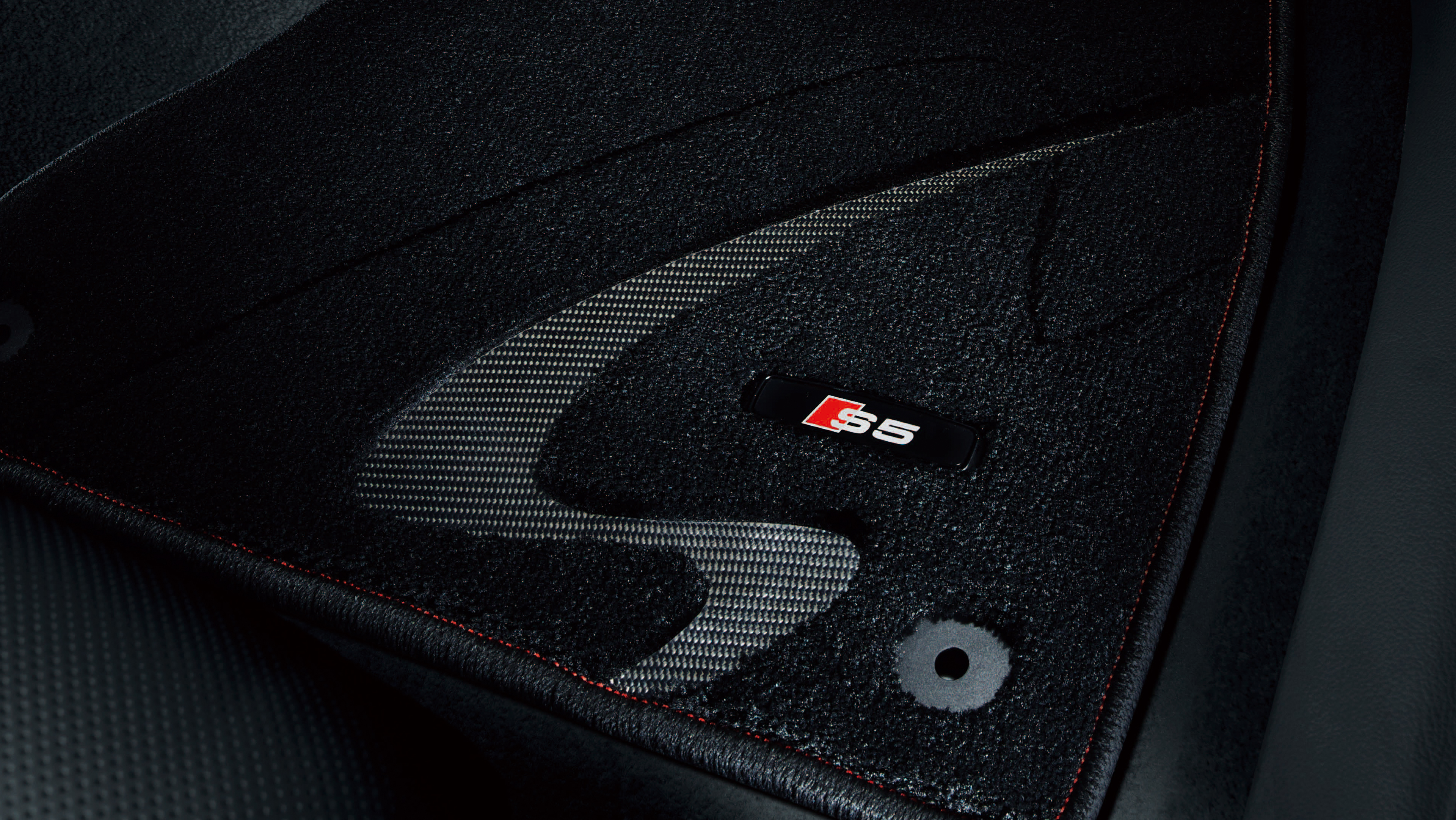 ロングホイールベースで生み出された広々とした空間に、デジタルテクノロジーと走りのダイナミズムが融合。Sロゴが刻まれた、コーナリング時にも身体をしっかりとホールドする、ファインナッパレザーのSスポーツシート*、カーボンツイルマイクロストラクチャーのデコラティブパネルやフラットトップ&ボトムのステアリングホイールがAudi S5のパフォーマンスを主張します。さらにインテリアエレメンツ バナジウムルック*を選べばメタリックパーツはダークな色調に。上質さと機能美が共鳴する空間が、ステアリングを握るあなたの胸を高鳴らせます。