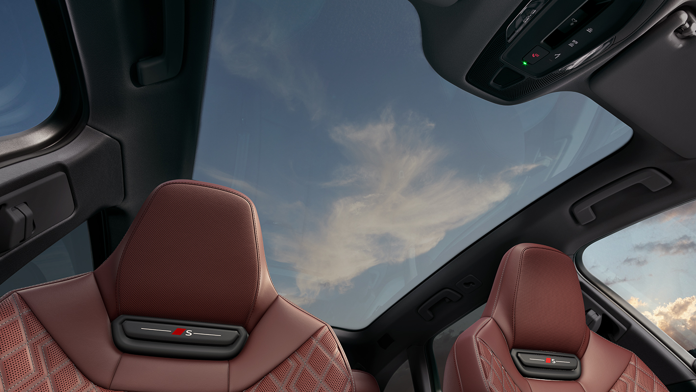 天井全体に広がるスマートパノラマガラスルーフは、透明度を変更できるPDLC技術 (ポリマー分散型液晶)を採用。Audi S5は6セグメント、Audi S5 Avantは9セグメントに分けて遮光モードの切り替えができます。熱線を低減する構造により、快適性を保ちながら車内の隅々に自然光を豊かに採り込めます。エンジンを停止すると自動で不透明に切り替わり、再びエンジンを始動すると最後に選択した設定になります。
