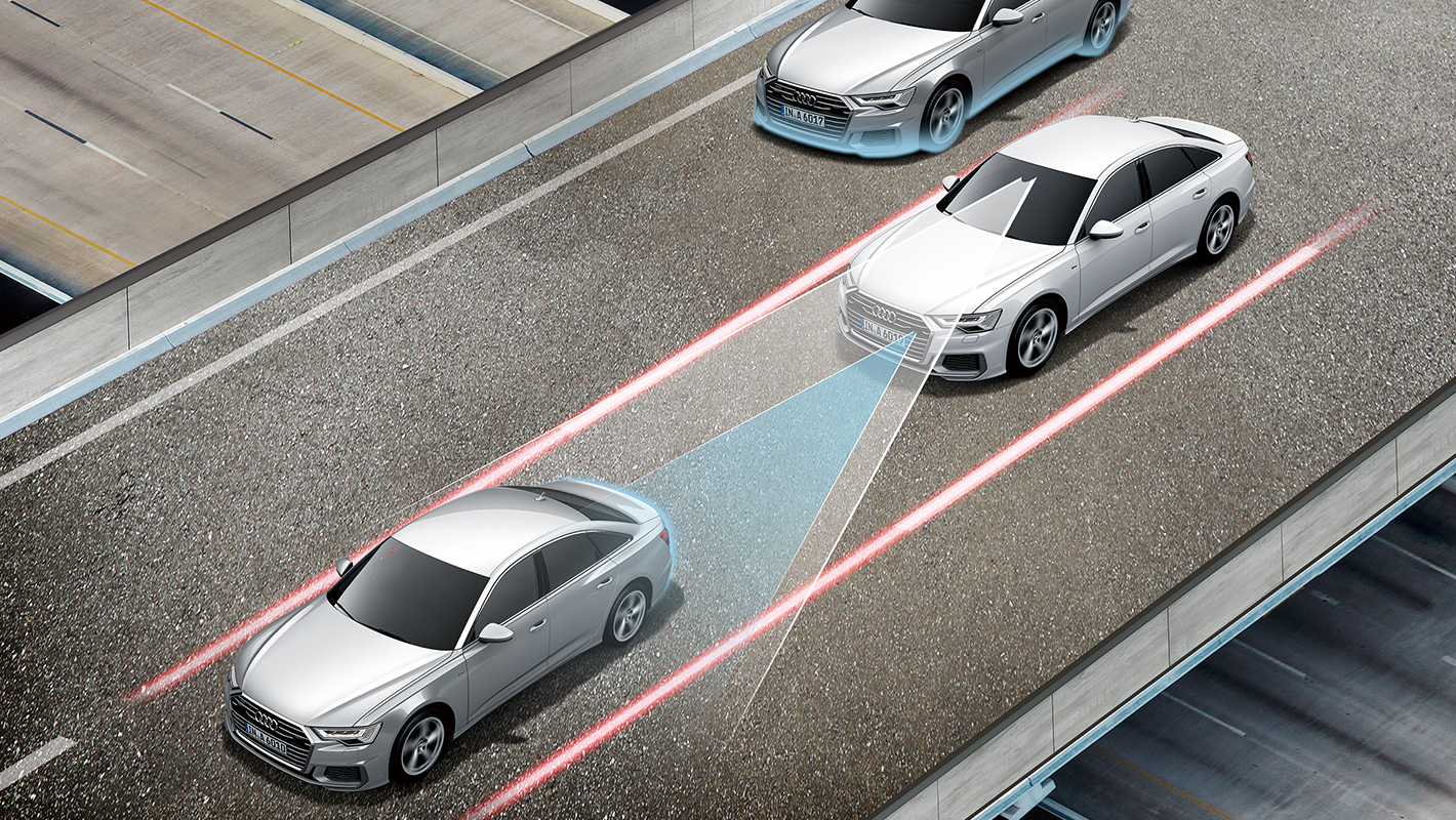 車両のリヤに設置された、レーダーセンサーが捉えたデータを利用して、後方から接近する車両を監視。追突されるリスクが検知された場合、アウディプレセンスベーシックを起動します。