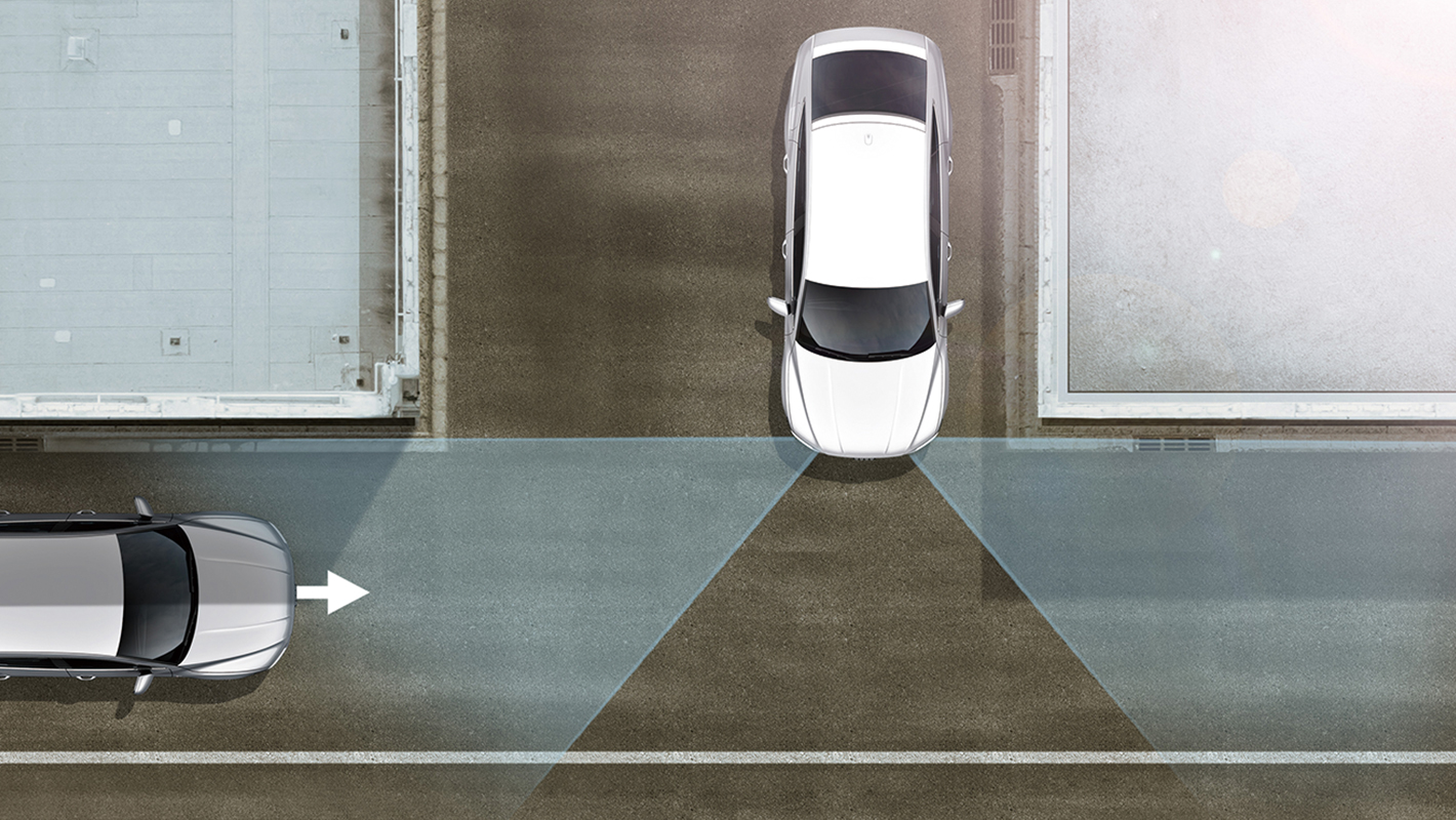 駐車スペースなどから車速約10km/h以下でバックして路上に出る際に、左右から接近する車両を監視。衝突の危険を乗員に警告します。ドライバーへの警告は光と音、そしてブレーキによる振動によって段階的に行われます。