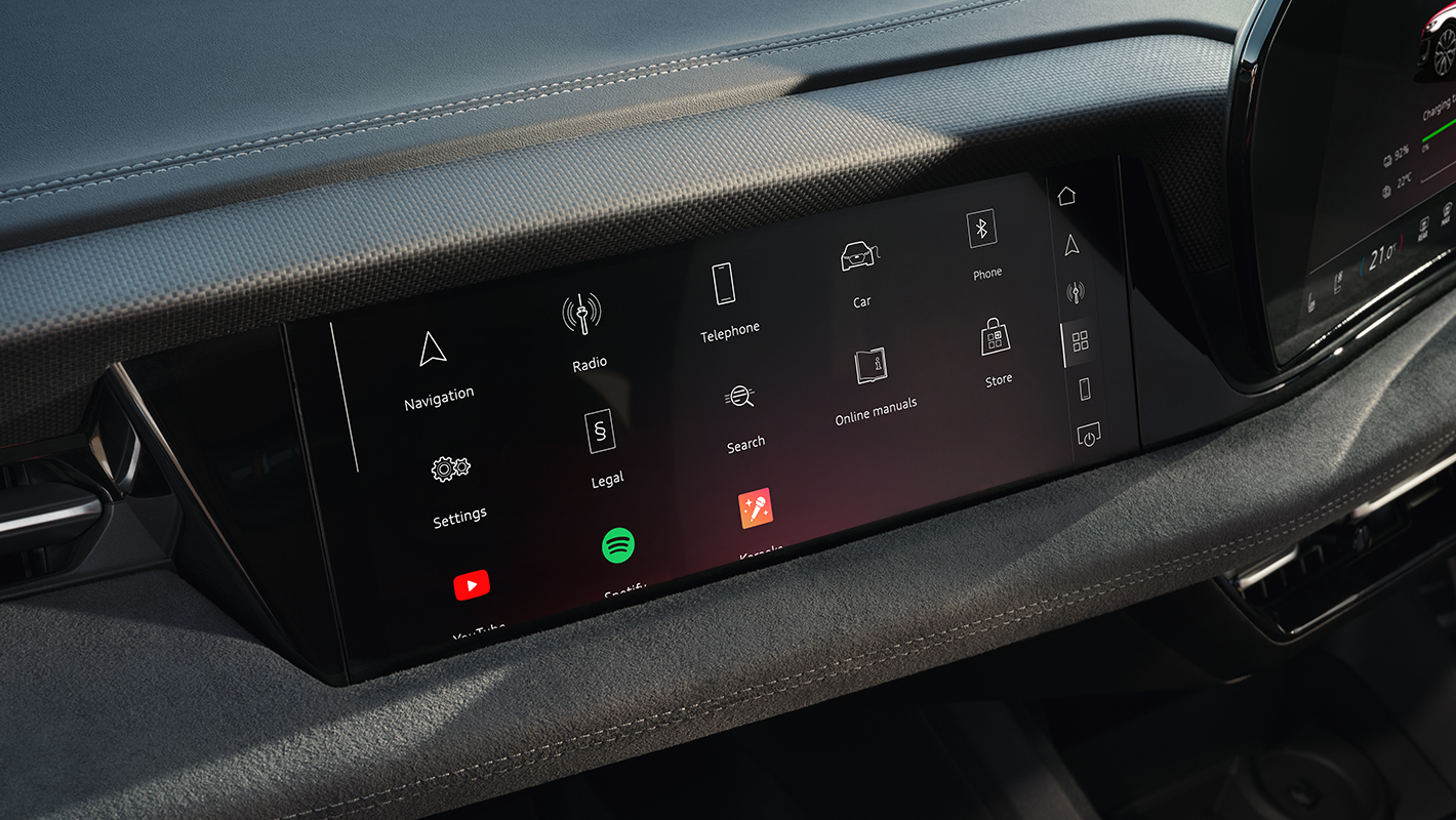 MMIパッセンジャーディスプレイは助手席に魅力的なインフォテインメント体験を提供します。ダッシュボードに統合された10.9インチディスプレイに、動画や音楽など広範なコンテンツの表示と操作が可能。MMIパノラマディスプレイとは異なる地図を表示でき、目的地の検索や入力も行えます。表示が不要な場合はスタンバイデザインに切り替えられます。