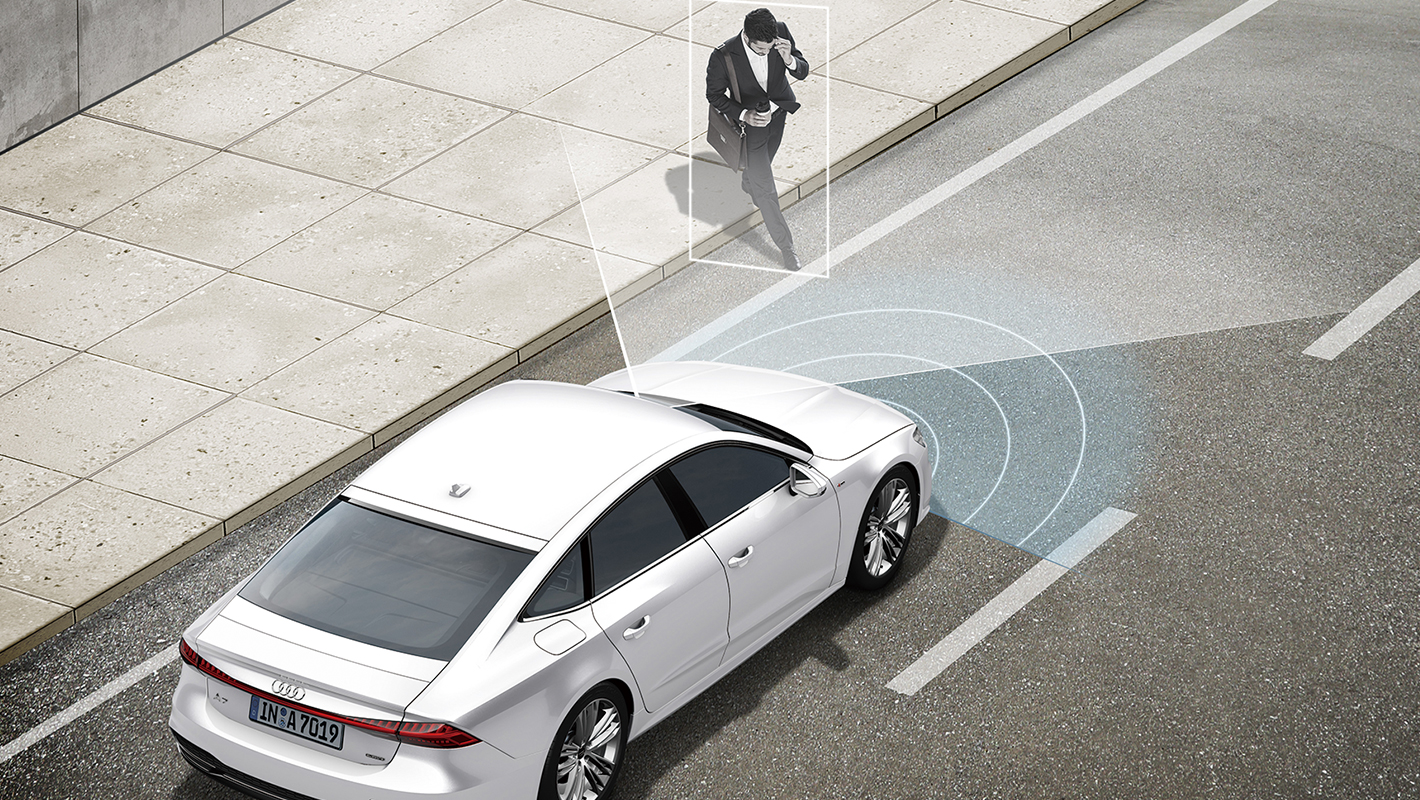 フロントクロストラフィックアシストの機能として、車両の左右から接近する車両を監視。衝突されるリスクが検知された場合、アウディプレセンスベーシックを起動します。アウディプレセンスベーシック、アウディプレセンスリヤと連携し、全周囲からの衝突に備えることができます。