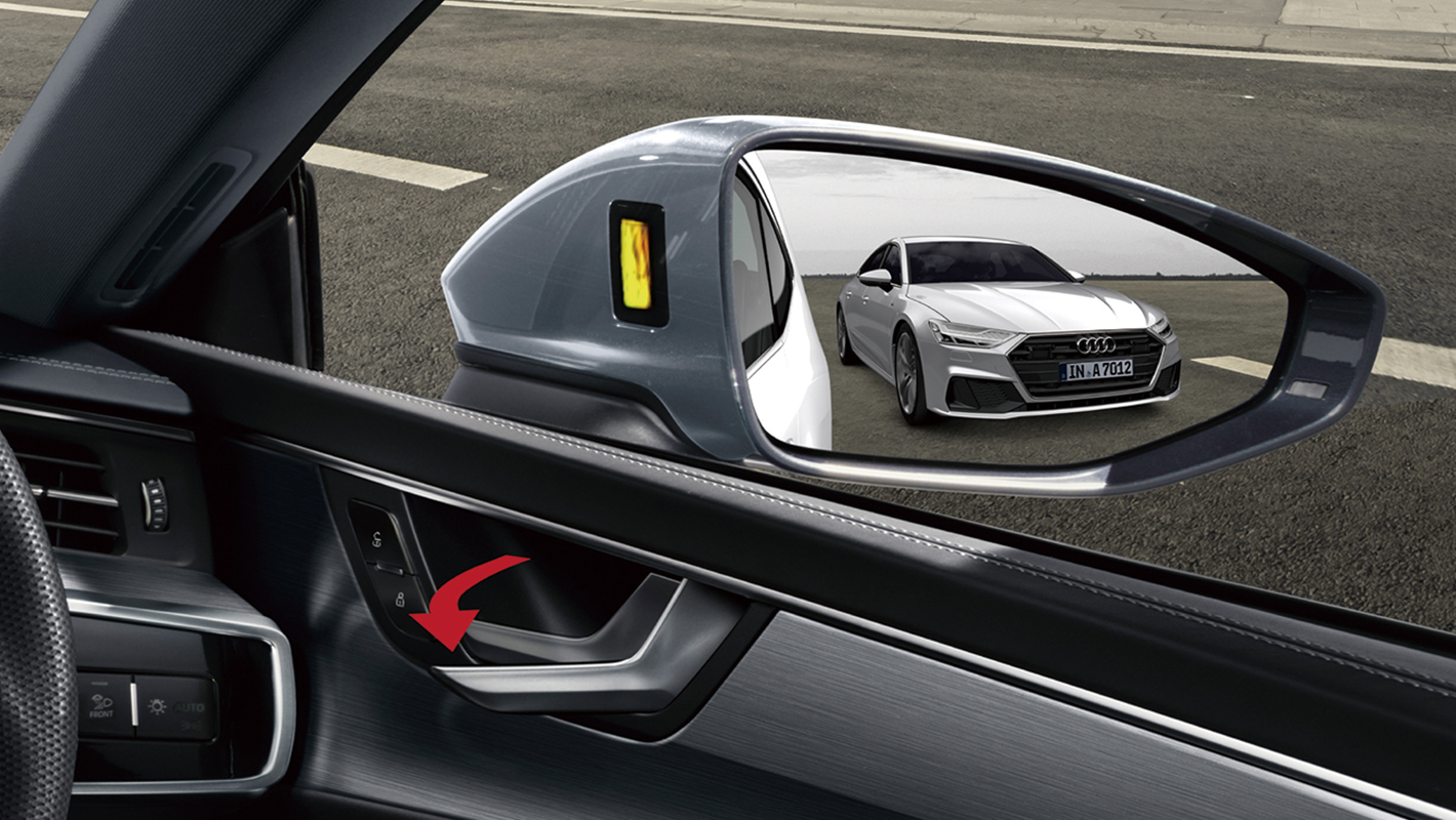 システムがレーダーセンサーを用いて後方に迫る車両を監視。クルマの停車時にドアを開ける時、後方から近づく車両と衝突する危険がある場合、乗員に注意喚起を行います。ドアのハンドルをひくと、ドアのストリップライトとエクステリアミラーのLED表示が点灯し警告します。