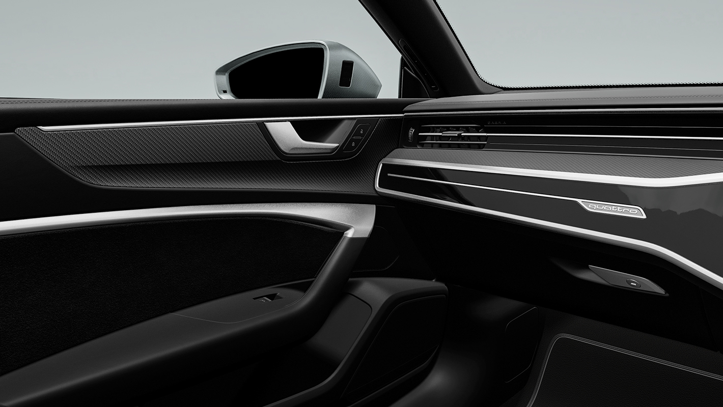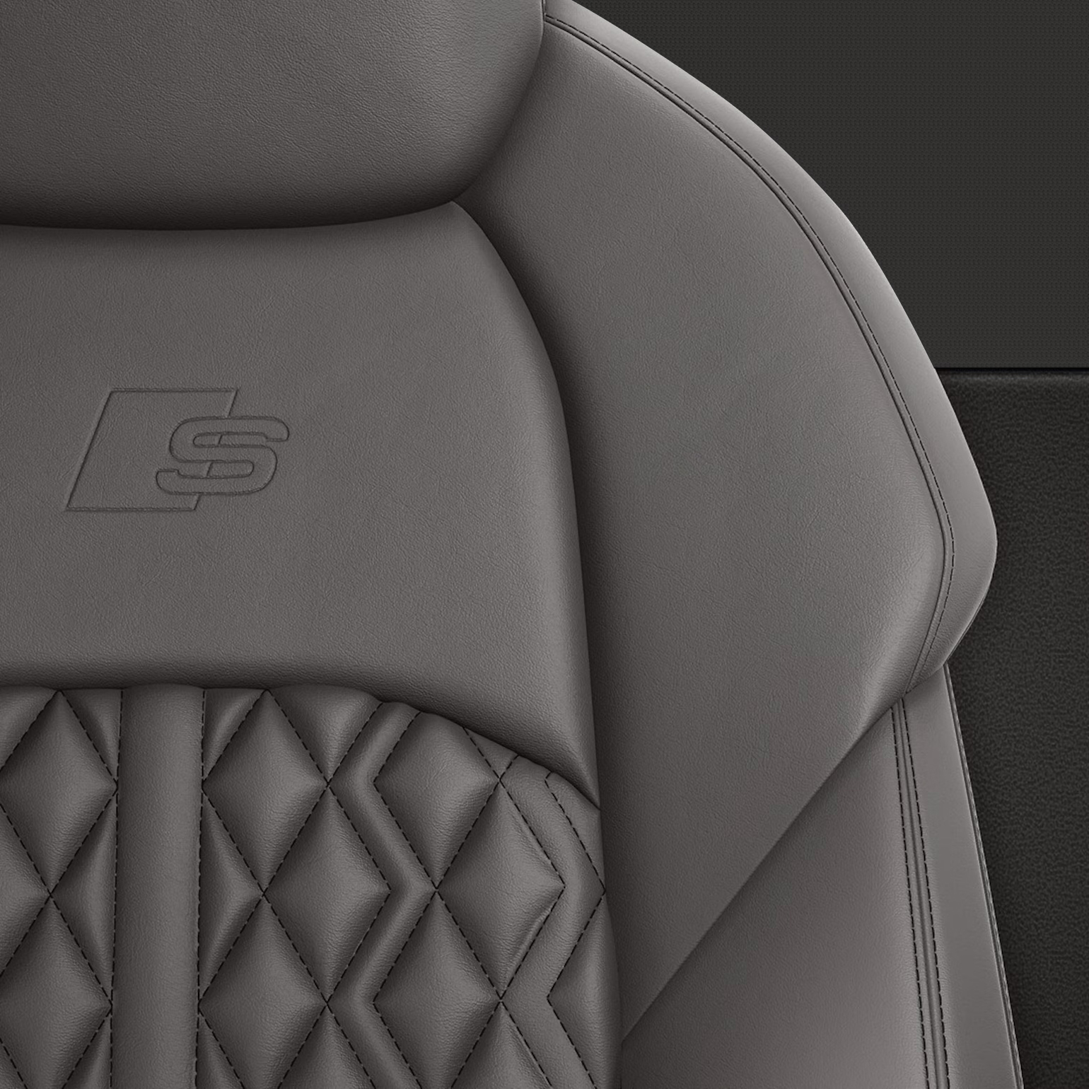 ブラックを基調とした室内に、コーナリング時も身体をしっかりとサポートするSスポーツシートを標準装備。上質で温かみのあるバルコナレザー、コントラストのある印象的なダイヤモンドステッチが、スポーティでエレガントな雰囲気を際立たせます。インストルメントパネルはインフォテインメントを直感的に操作できるMMIタッチレスポンスやドライビングへの集中力を高めるバーチャルコックピットが美しく融合。運転に集中できる快適でスポーティな空間へと仕立てています。