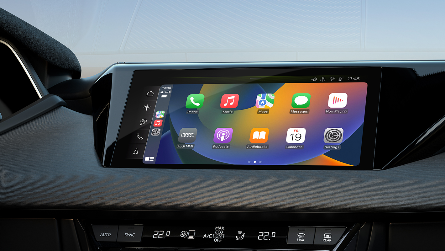デジタル時代にふさわしいユーザーインターフェースであるMMIタッチレスポンスは、フラットな高解像モニターで車両のセッティングやインフォテインメントを直感的に操作することが可能。グラフィックや振動、音によって、視覚、触覚、聴覚に明確な反応を感じ取れます。10.1インチディスプレイに表示されるナビゲーションシステムは、画面に触れることでナビゲーションマップの縮尺の変更も可能。充電ステーションを検索して目的地に設定することができます。
