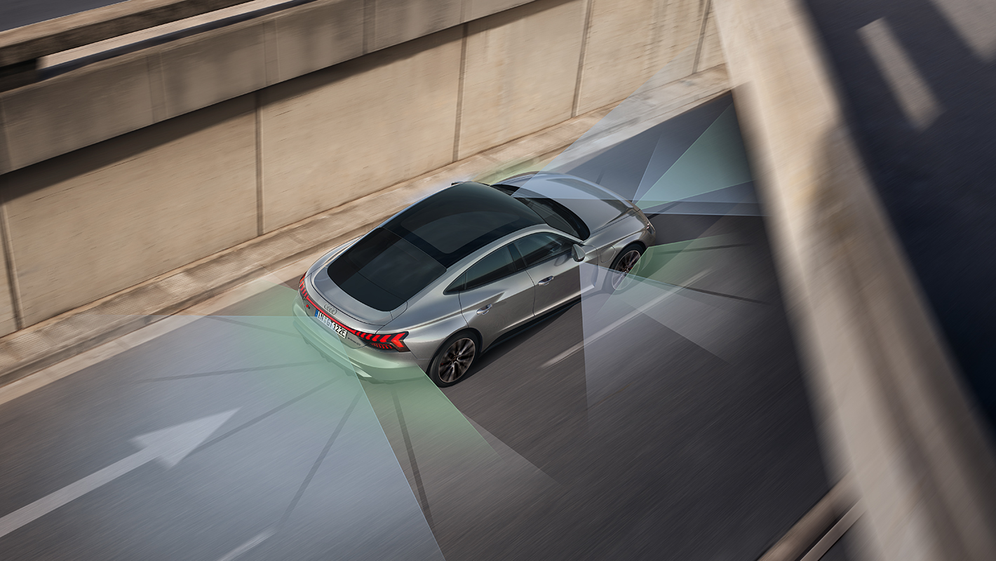 Audi S e-tron GTは、多彩な先進技術を組み合わせた、繊細なアシスタンスシステムを搭載。長距離ドライブの運転をサポートするアダプティブクルーズアシストや衝突の回避支援、被害を軽減するアウディプレセンスフロント、駐停車をサポートするパークアシストなどを標準装備します。快適性と安心感に包まれたドライビング体験をお届けします。