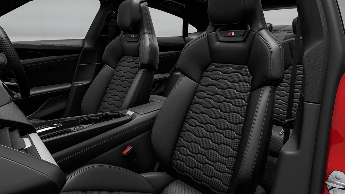 一体型ヘッドレストを備えたホールド性の高いスポーツシート。シートサイドボルスターはコーナリングの際、身体をしっかりサポートする形状に。パーフォレイテッド加工が施され、シートベンチレーション機能を搭載。マッサージ機能も備えています。バックレストのSロゴ、上質で温かみのあるファインナッパレザー、印象的なハニカムパターンが、スポーティでエレガントな雰囲気を際立たせます。