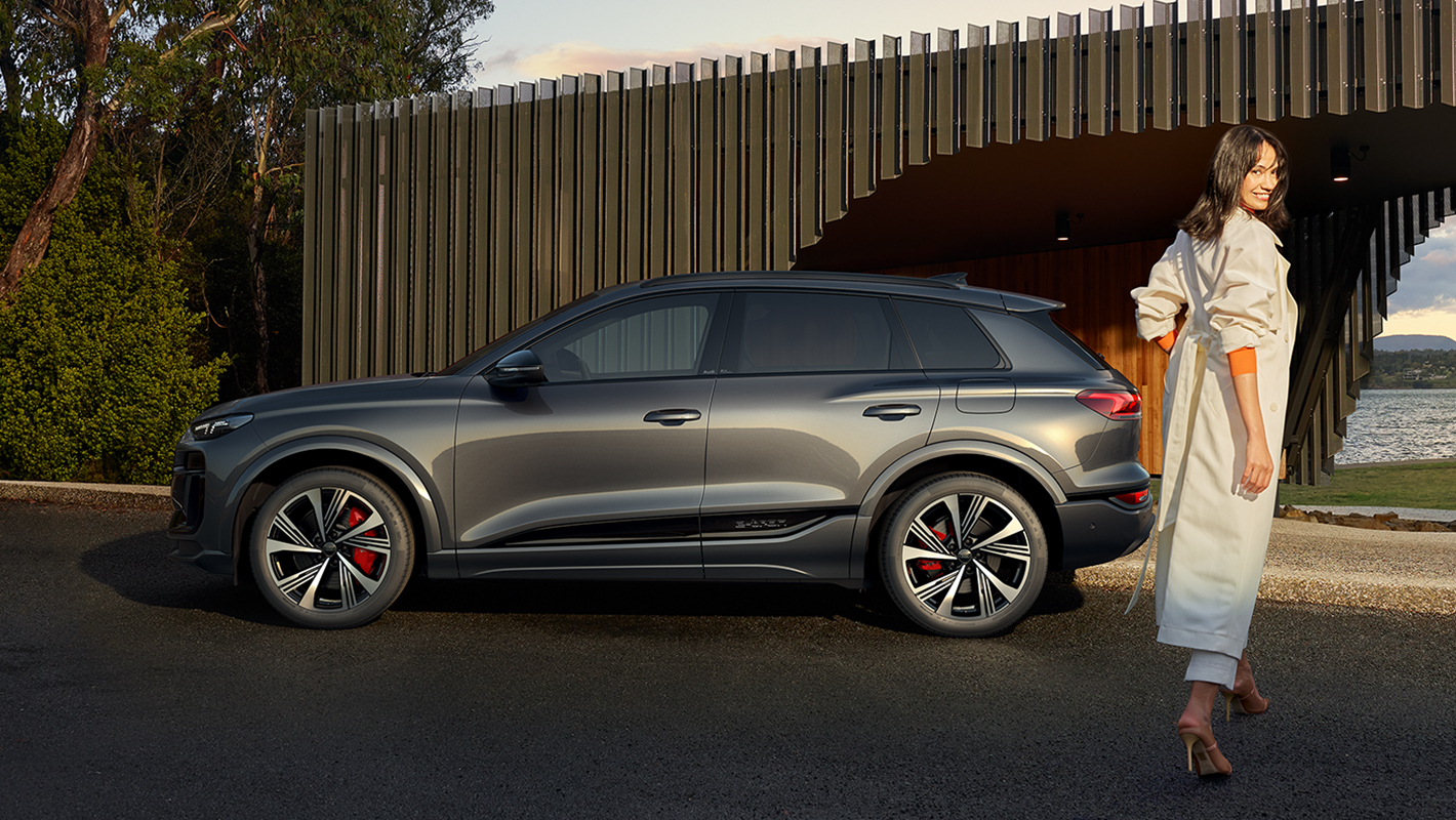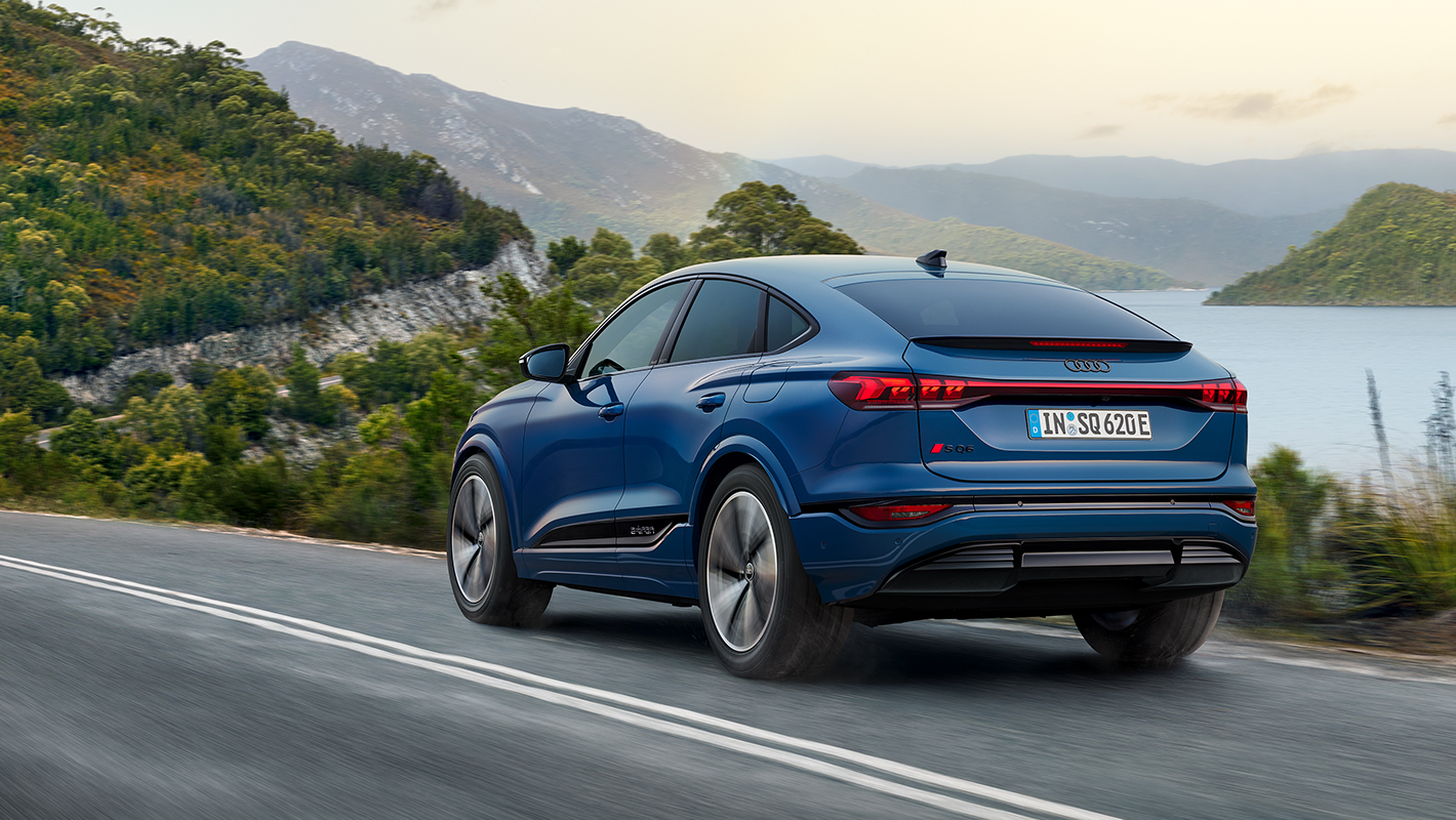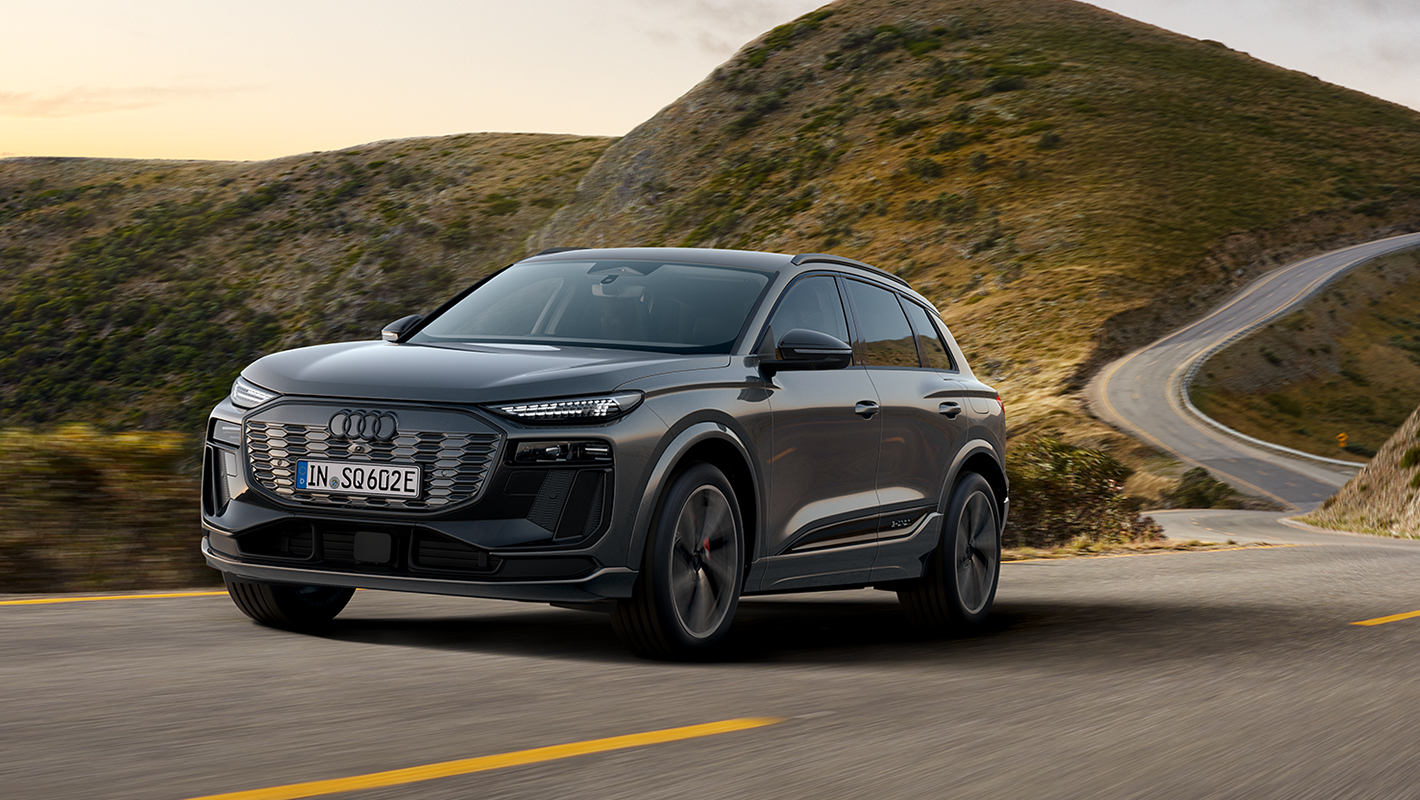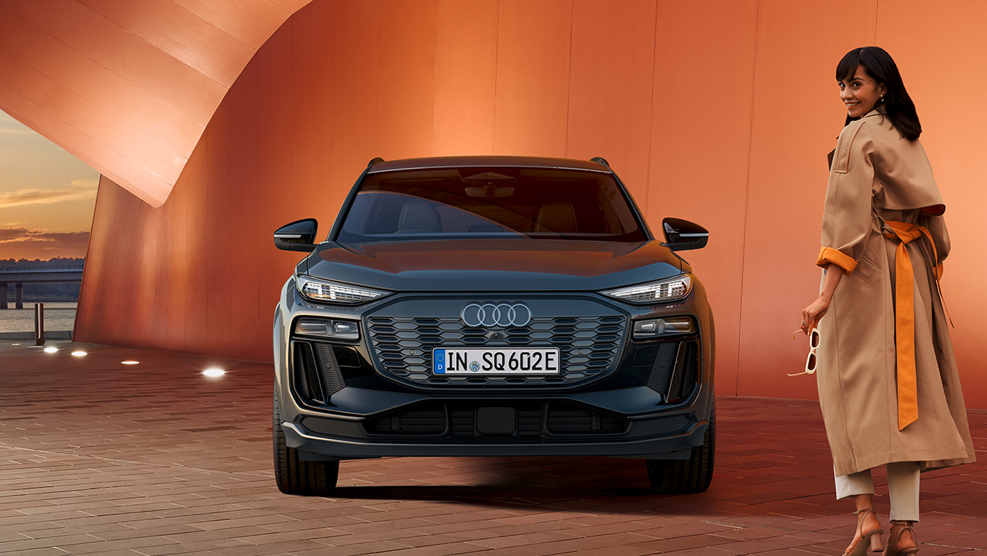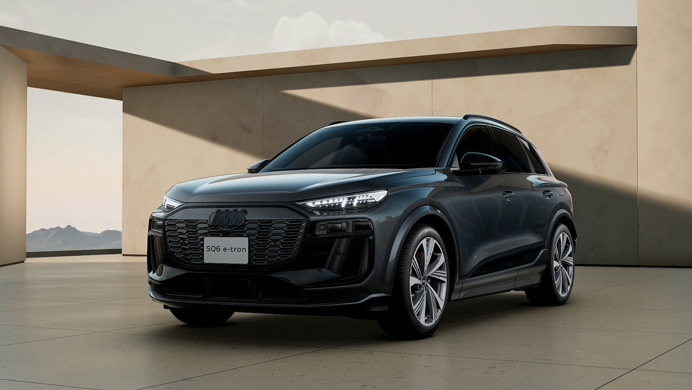 アグレッシブなドライビングのためにパフォーマンスとデザインを研ぎ澄ませたAudi SQ6 e-tron。電気自動車らしい力強い加速と俊敏なハンドリング、デジタルインテリアを備える室内空間に磨きをかけたSモデルならではの際立つ個性が、プレミアムミッドサイズEVの新境地を拓きます。