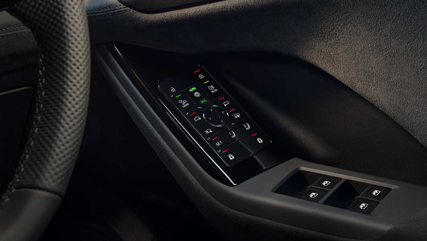 エクステリアミラー角度調整、ヘッドライト操作、シートメモリー機能などを統合したスマートドアパネル。グロスブラックで仕上げられた美しいパネルがモダンなインテリアと調和。ソフトタッチによる優れた応答性は直感的な操作を可能とします。
