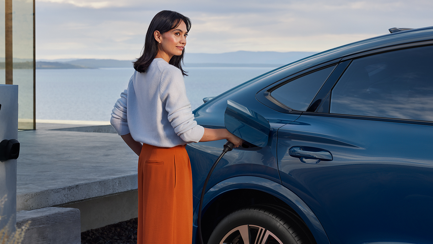 電気モーターと電動化されたブレーキコントロールシステムにより、運動エネルギーを電気エネルギーへと変換し、駆動用バッテリーにチャージ。ブレーキペダルを踏んだ時やアクセルペダルから足を離した時に作動し、エネルギーを有効活用して走行距離の向上に寄与します。走行状況に合わせて快適なドライビングと最適な回生レベルを調整するオートマチックモード、ステアリングホイールのパドルシフトから好みの回生レベルを選択できるマニュアルモードを備えています。