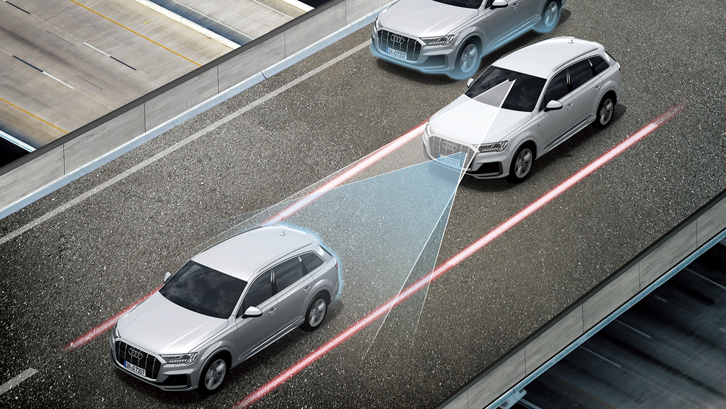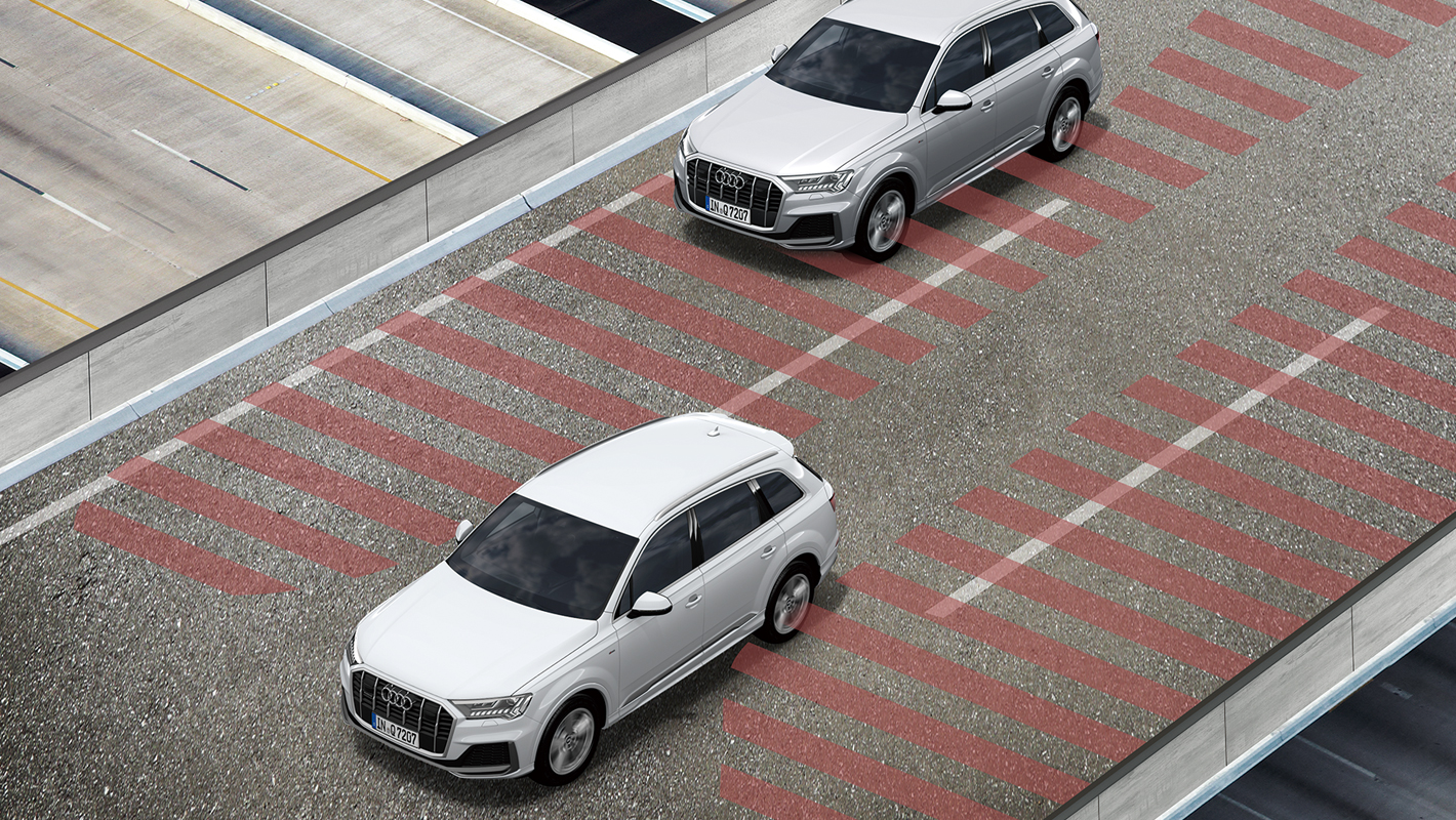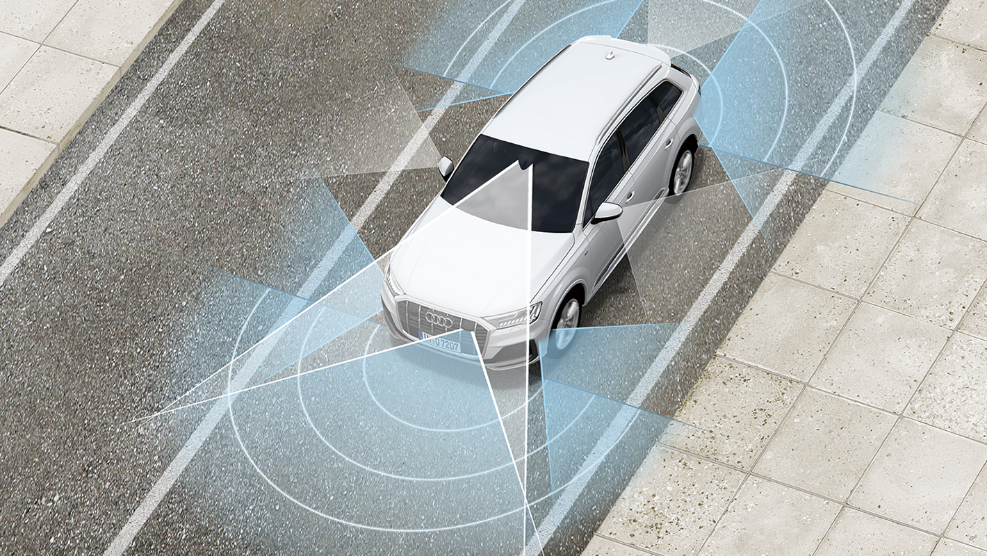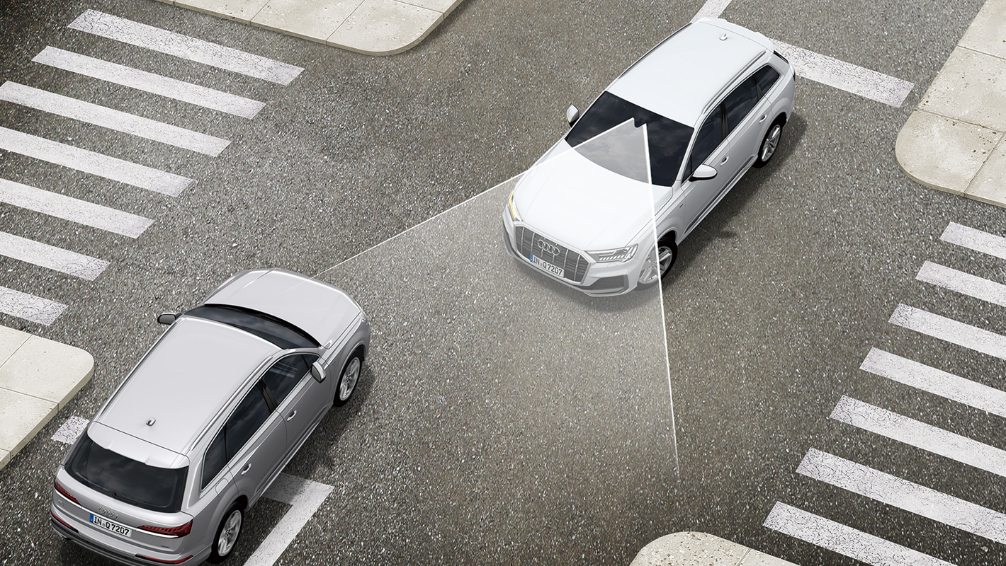 フロントクロストラフィックアシストの機能として、車両の左右から接近する車両を監視。衝突されるリスクが検知された場合、アウディプレセンスベーシックを起動します。アウディプレセンスベーシック、アウディプレセンスリヤと連携し、全周囲からの衝突に備えることができます。