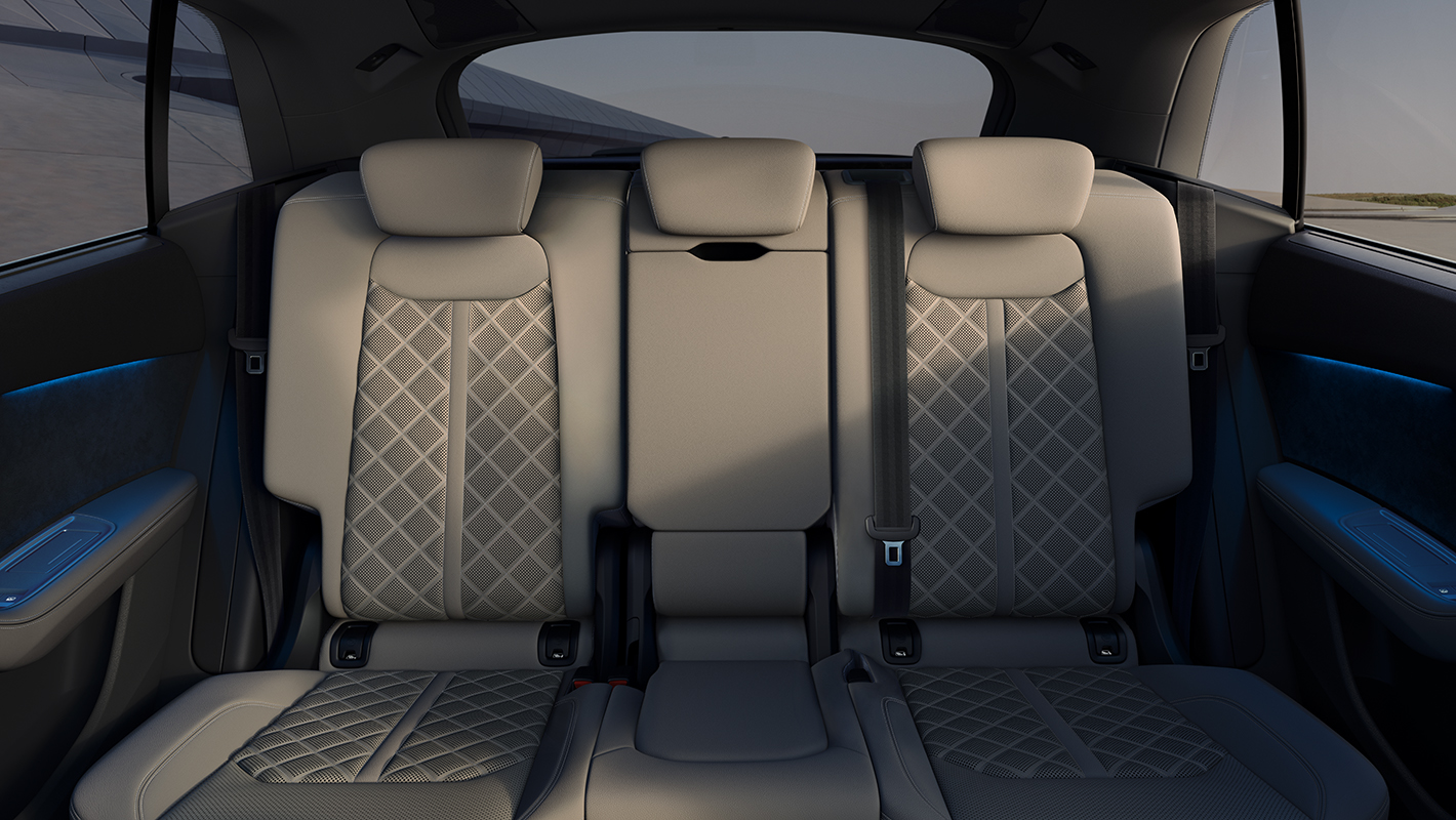 Audi SQ8は上質でスポーティな空間を演出するだけでなく乗る人すべてをもてなす快適性と実用性も兼ね備えます。リヤシートでは大人がゆったりと座れるヘッドクリアランスを確保し快適な居住性を実現しています。