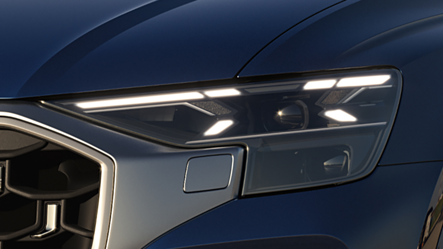 HDマトリクスLEDヘッドライトは、解像度が高い光で道路を高精細に照射。高速走行でハイビーム使用時にカメラが対向車や先行車を検知すると、そのエリアへのハイビームをオフにしつつ、それ以外の車間エリアや周辺は明るく照らし続けます。アウディレーザーライトは高速走行時に作動し、ハイビームの照射距離を約2倍に拡大。MMIタッチディスプレイで4つの点灯パターンを切り替えられるデジタルデイタイムランニングライトと、印象的な光の流れを生みだすダイナミックターンインディケーターも搭載しています。