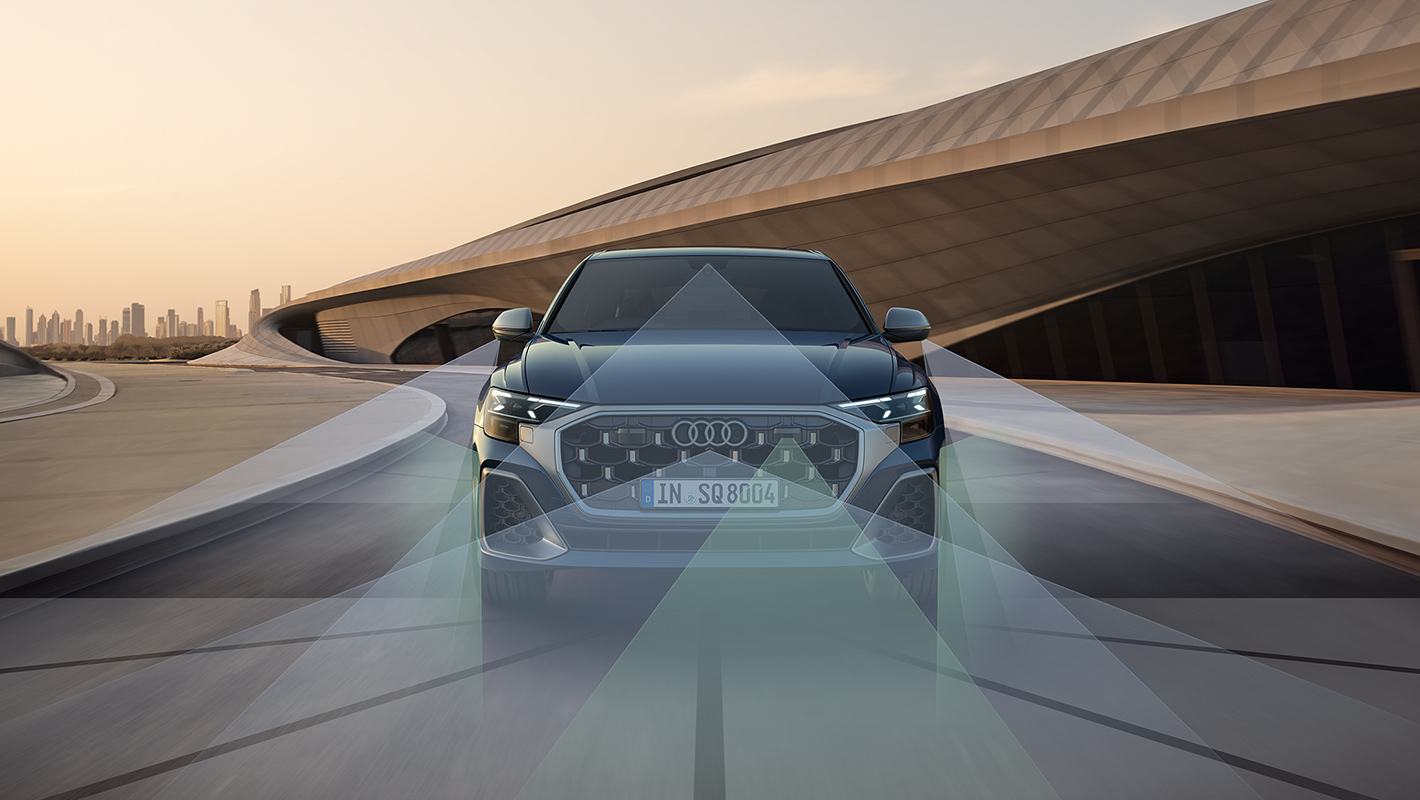 Audi SQ8には、先進のドライバーアシスタンス&セーフティテクノロジーを惜しみなく投入しています。複数のレーダーやカメラにより周囲の状況を的確に捉えるとともに従来、個々で作動していた一つひとつの機能を連携させることで、より高度で繊細な制御を可能に。快適性と安心感に包まれた、かつてない新しいドライビング体験をお届けします。