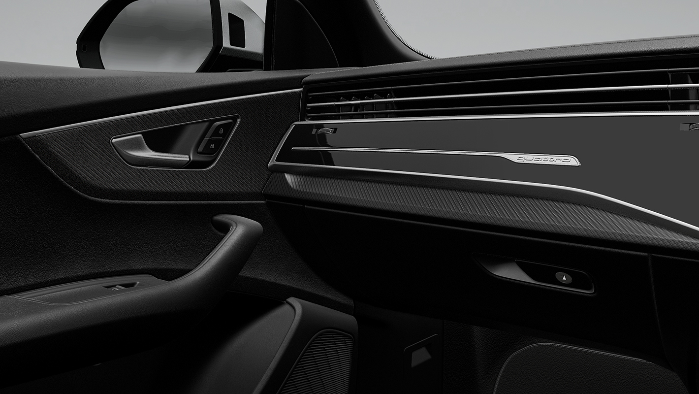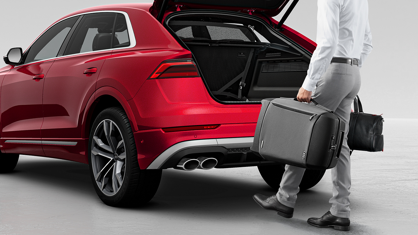 アダプティブエアサスペンションは、4輪すべての減衰特性を無段階に調整する電子制御式エアサスペンションです。車高とダンピングが自動的に制御され、快適な乗り心地とよりダイナミックな走りを実現。アウディドライブセレクトでオンロードからオフロードまで走行シーンに合わせた最適な車高に設定可能。また、荷物の積み込みを容易にするため、ラゲッジコンパートメントにあるボタンでリヤを低く設定することもできます。S/RSアダプティブエアサスペンションは、アダプティブエアサスペンションをベースに、サスペンション設定をよりスポーティな走行特性、機敏なハンドリングに適応させています。