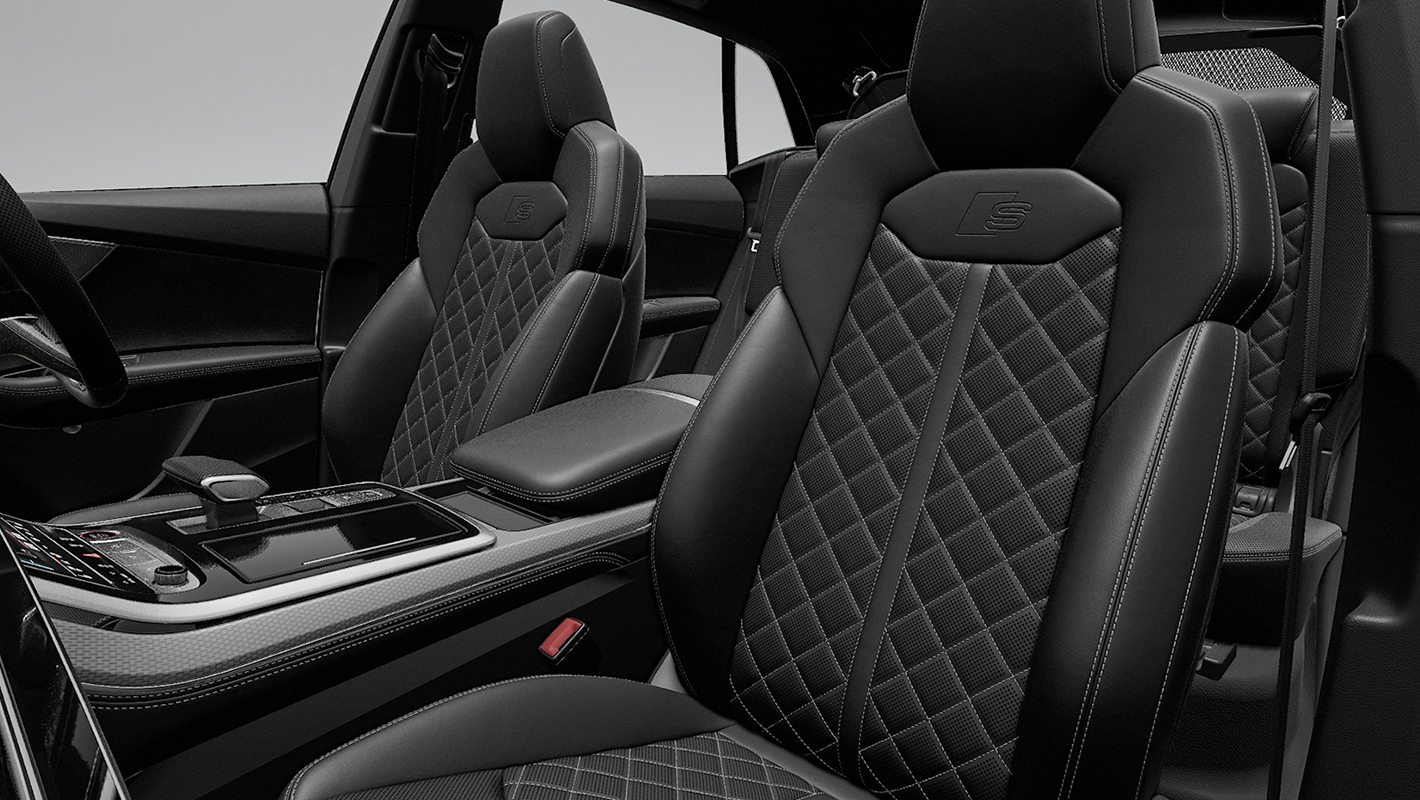 Sロゴが刻まれたダイナミカ/レザーのスポーツシートに加え、ヘッドライニングまでブラックで統一し、スポーティな中にも常にくつろぎを忘れない上質なドライビング空間を演出。デコラティブパネルはエンボス加工を施したマットブラッシュトアルミニウム製。足元には質感、耐久性に優れたステンレススチールフットペダルを備えディテールまでスポーティネスを貫いています。