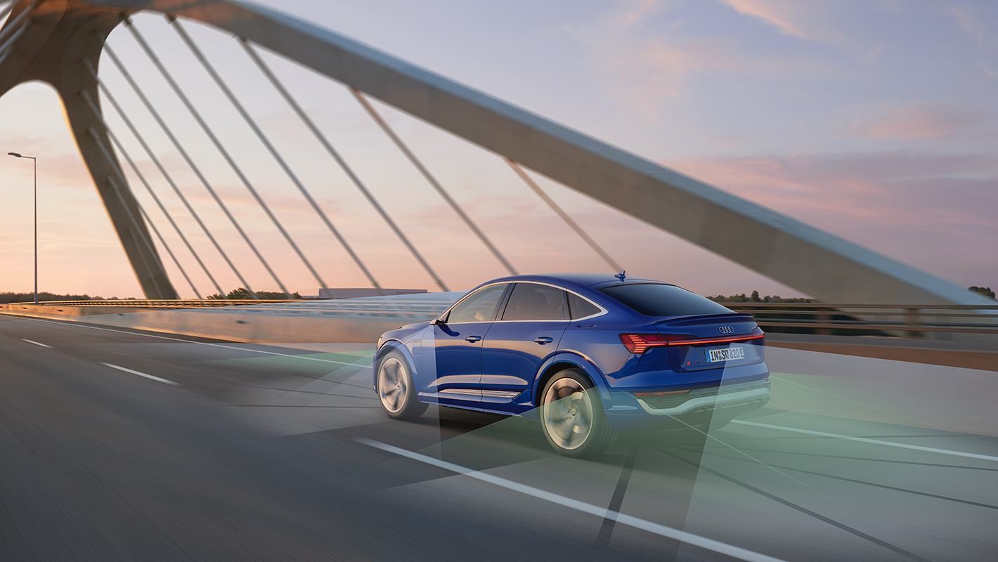 Audi SQ8 Sportback e-tronは、ドライバーとパッセンジャーにさらなる安心をもたらすために、高精度なレーダーやカメラ、各種センサーを搭載し、それに基づく統合的な制御を実現します。衝突の回避支援、被害軽減を図るアウディプレセンスフロント/プレセンスリヤなどが、安全なドライブに貢献。さらに、アダプティブクルーズアシストやカーブストーンアシストなど、多彩なドライバーアシスタンスシステムを採用し快適なドライブをサポートしています。