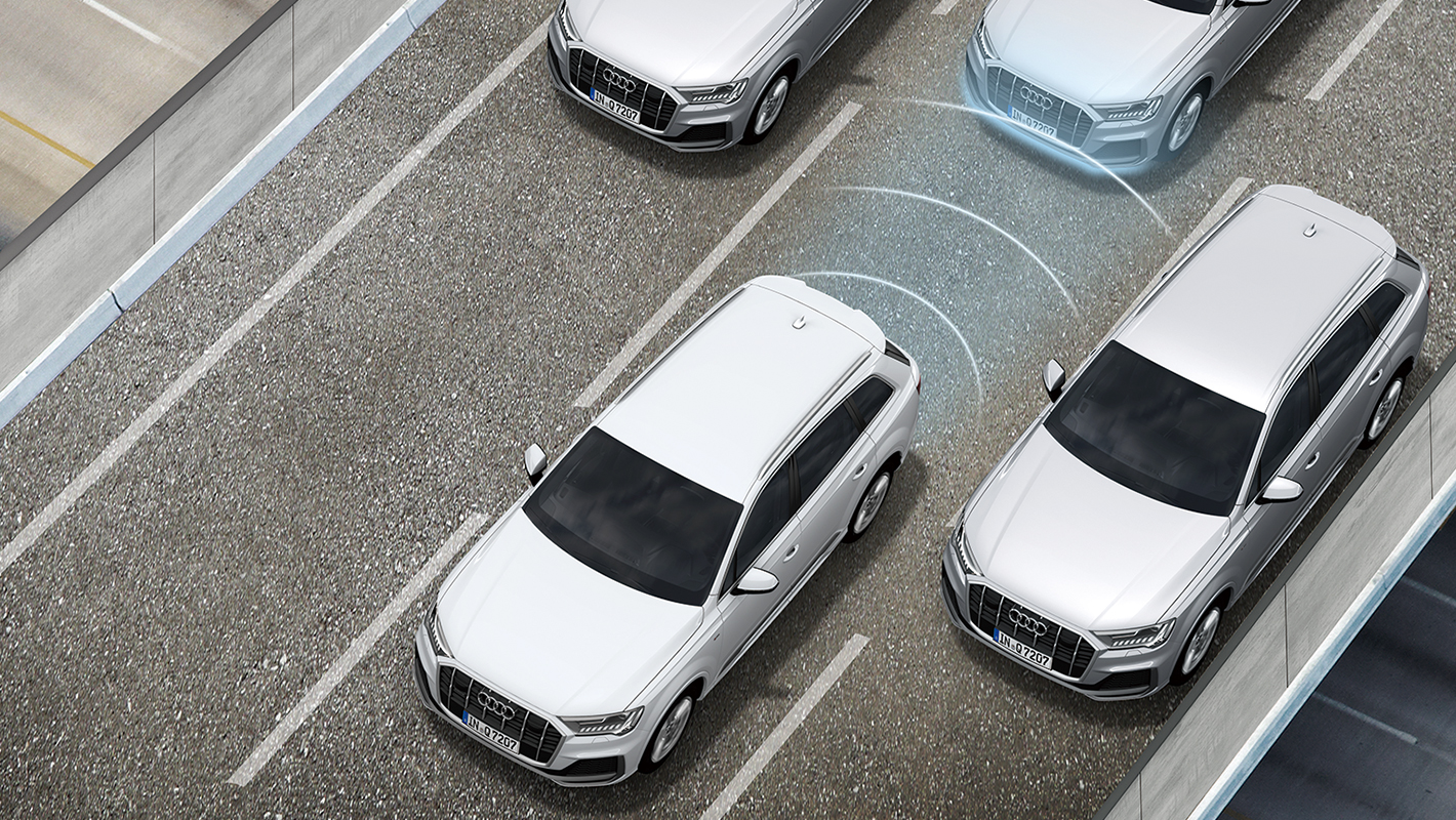 フロントクロストラフィックアシストの機能として、車両の左右から接近する車両を監視。衝突されるリスクが検知された場合、アウディプレセンスベーシックを起動します。アウディプレセンスベーシック、アウディプレセンスリヤと連携し、全周囲からの衝突に備えることができます。