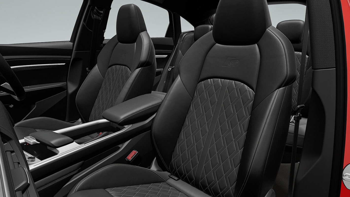 ブラックを基調としたインテリアに彩りを添えるのは、Sエンブレム付きのステアリングホイールやSロゴをあしらったドアシルトリム、クールな雰囲気を醸し出すマットブラッシュトアルミニウム ダークのデコラティブパネル。上質なバルコナレザーを使用し、精緻なダイヤモンドステッチを施して丹念に仕上げられたSスポーツシートは、優れたホールド性でクルマとの一体感を演出します。