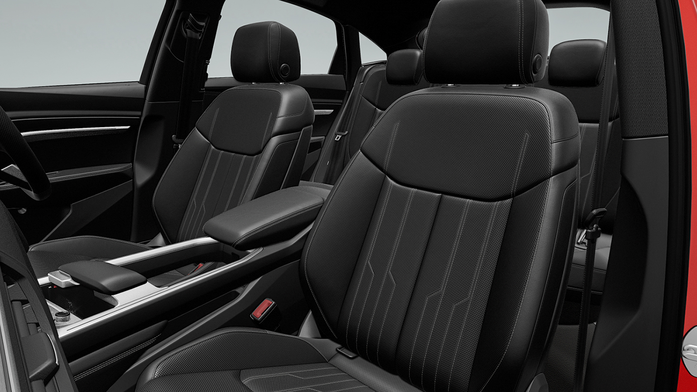 フロントフェイスはSモデル専用にデザインされたシングルフレームマスク、フロントバンパーリップ、エアインレットなどにより、大胆で精悍さあふれる表情に。5Vスポークデザインの20インチアルミホイール、Sロゴ入りのブラックブレーキキャリパーが筋肉質なブリスターフェンダーとともに足元を引き締めます。リヤエンドでは、ほぼ全幅に広がるシルバーのディフューザーインサートが、後方へ向かって滑らかに弧を描くSportbackのシルエットと調和する独創的なデザインが貫かれています。